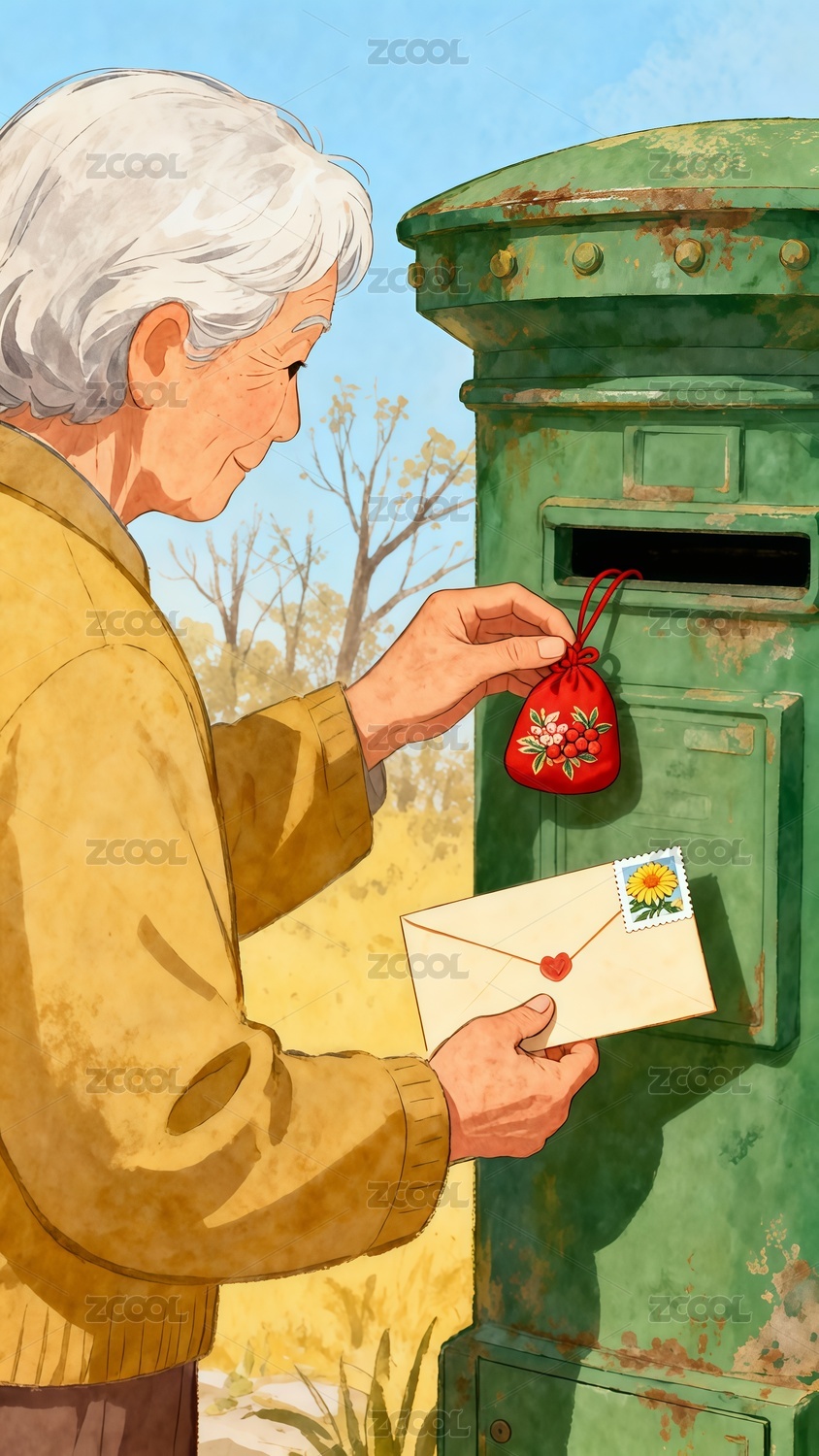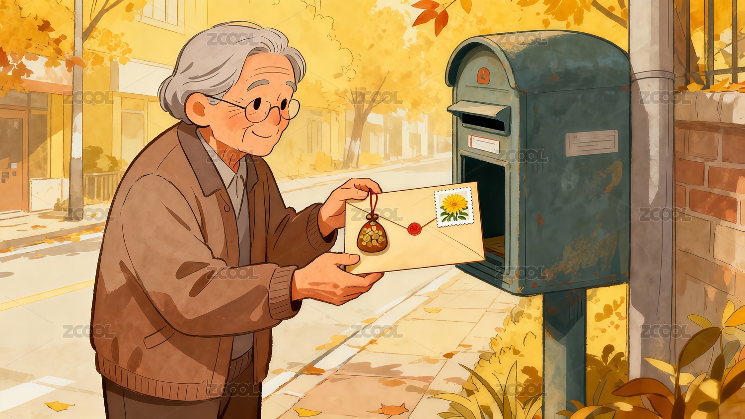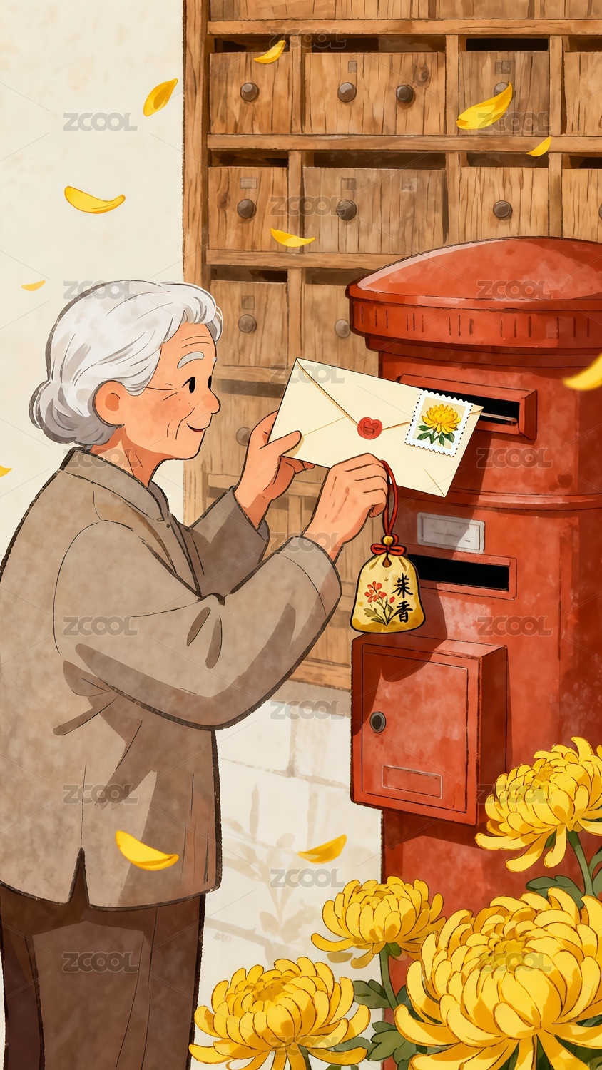 重陽節(jié)老年人寄出信件手繪插畫