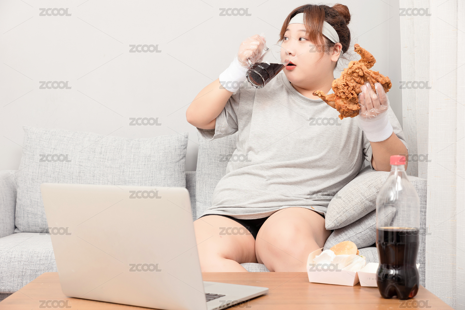 坐在沙發(fā)上的亞洲胖女孩