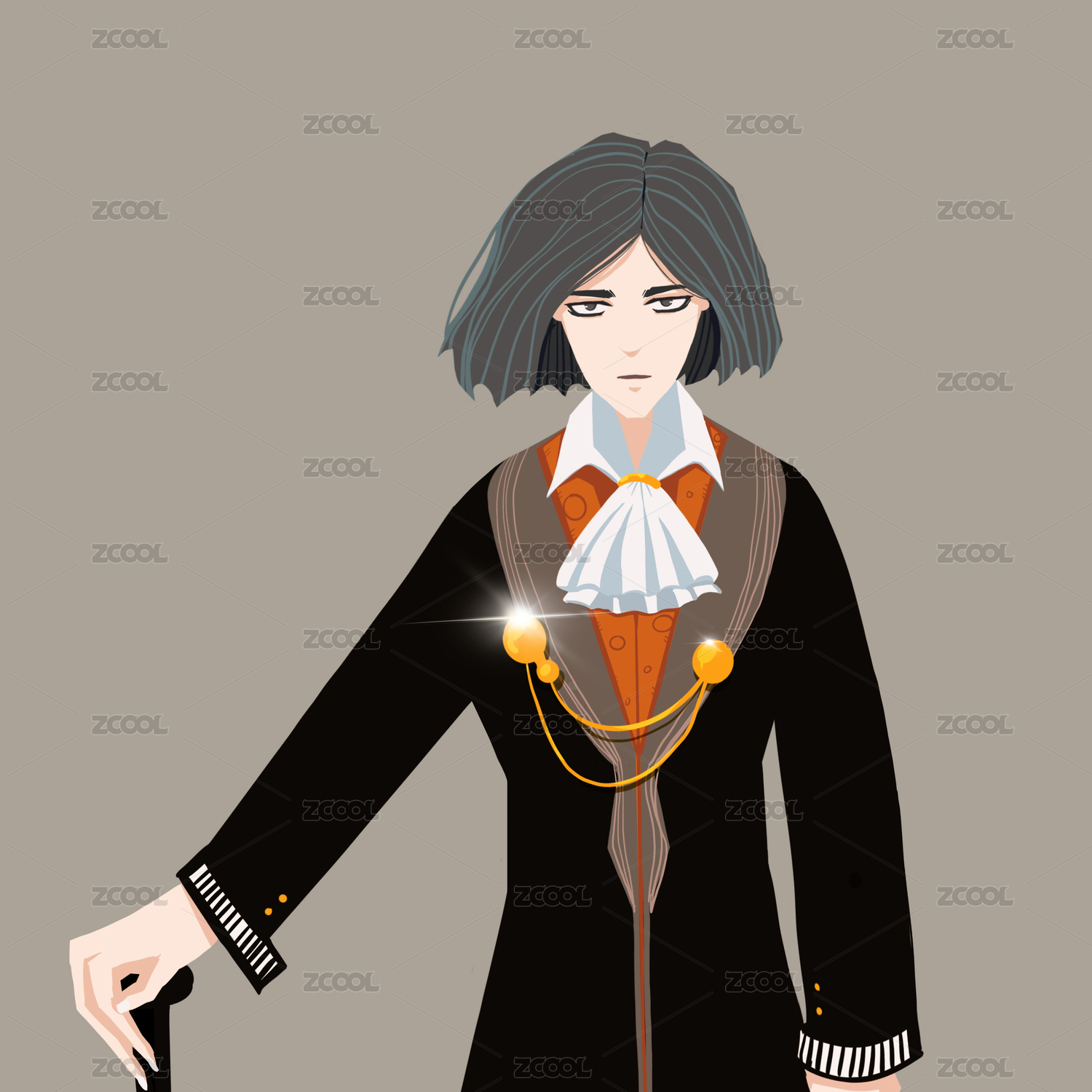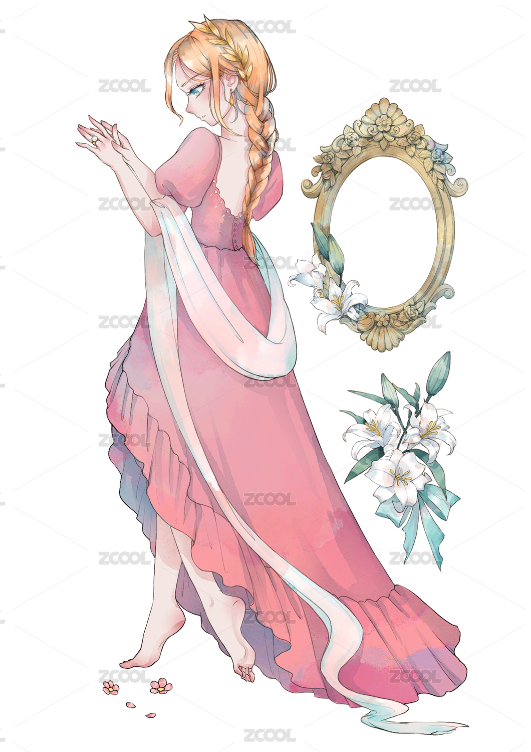 二次元亂世佳人禮服婚紗女孩插畫