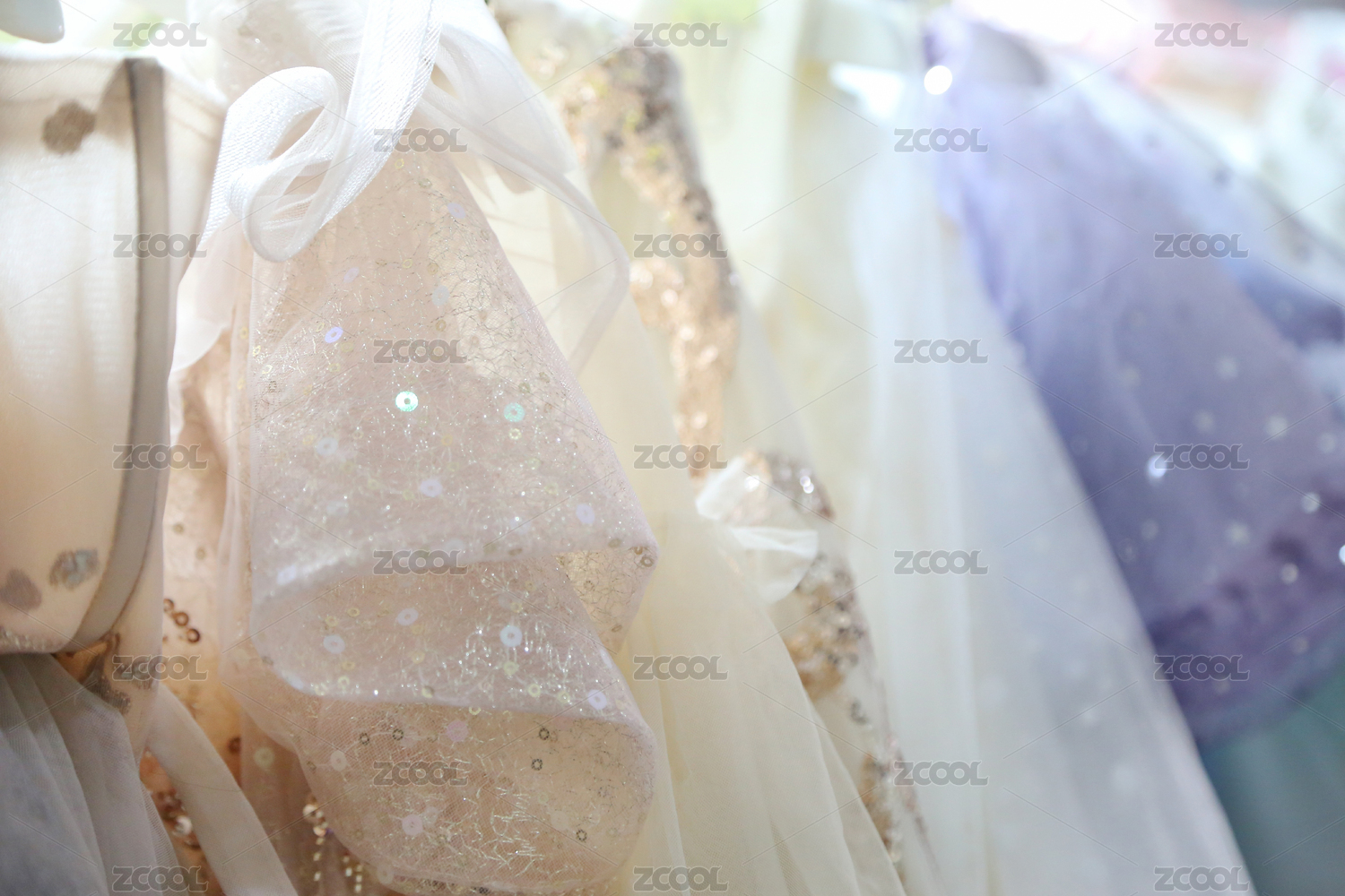 一排婚紗禮服特寫