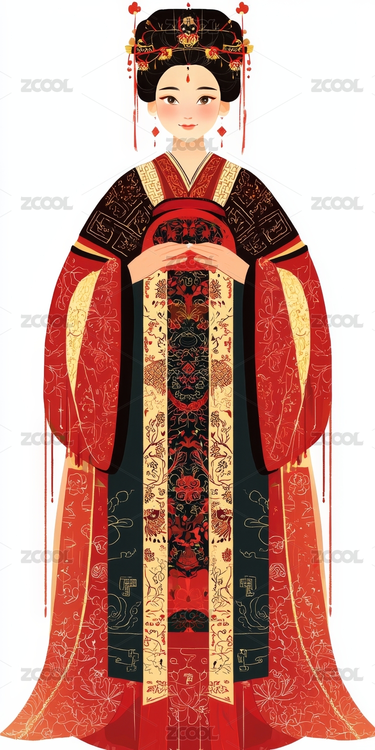 紅色禮服女性古風(fēng)插畫