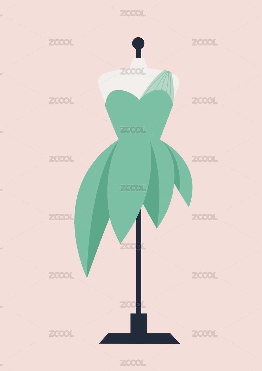 穿著綠色禮服連衣裙的人臺(tái)模特