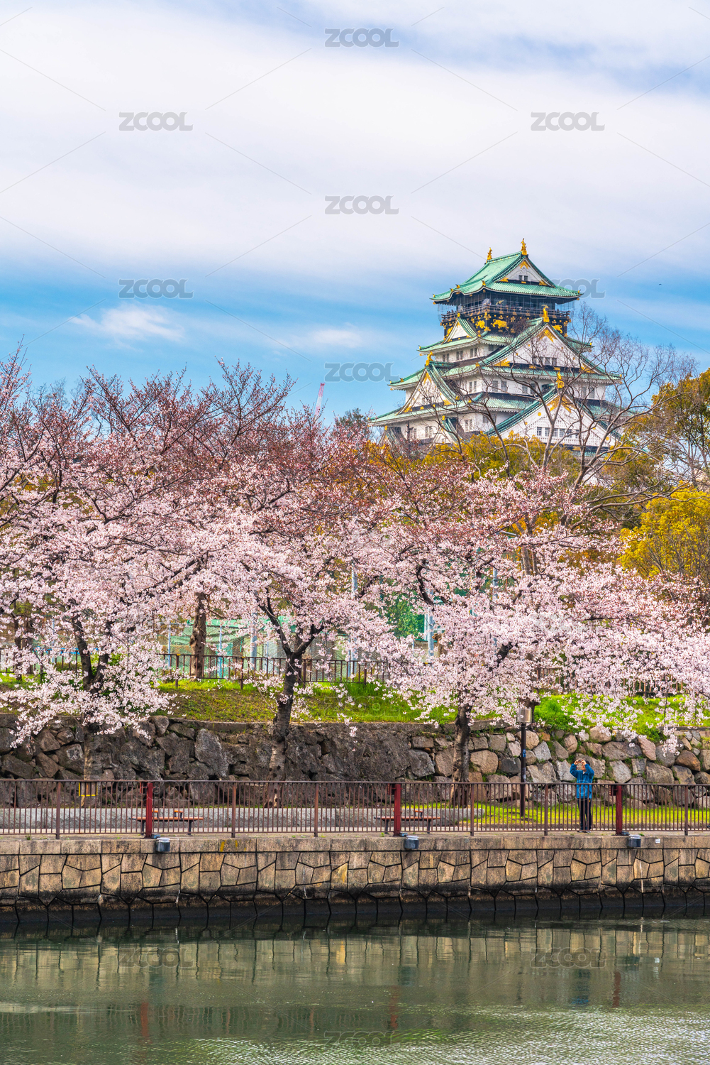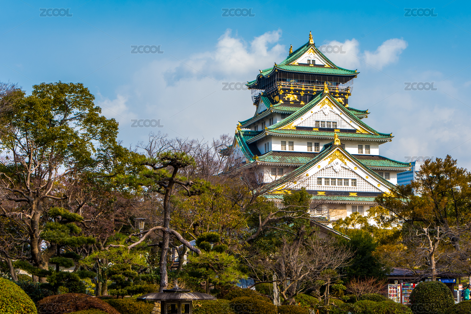 亞洲日本大阪市大阪城公園天守閣白天風(fēng)光