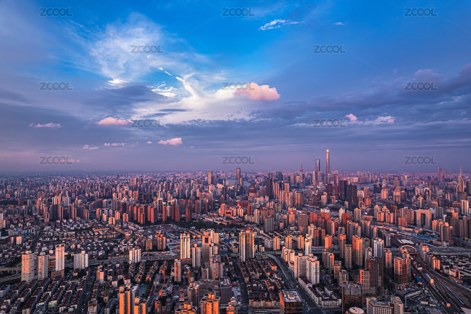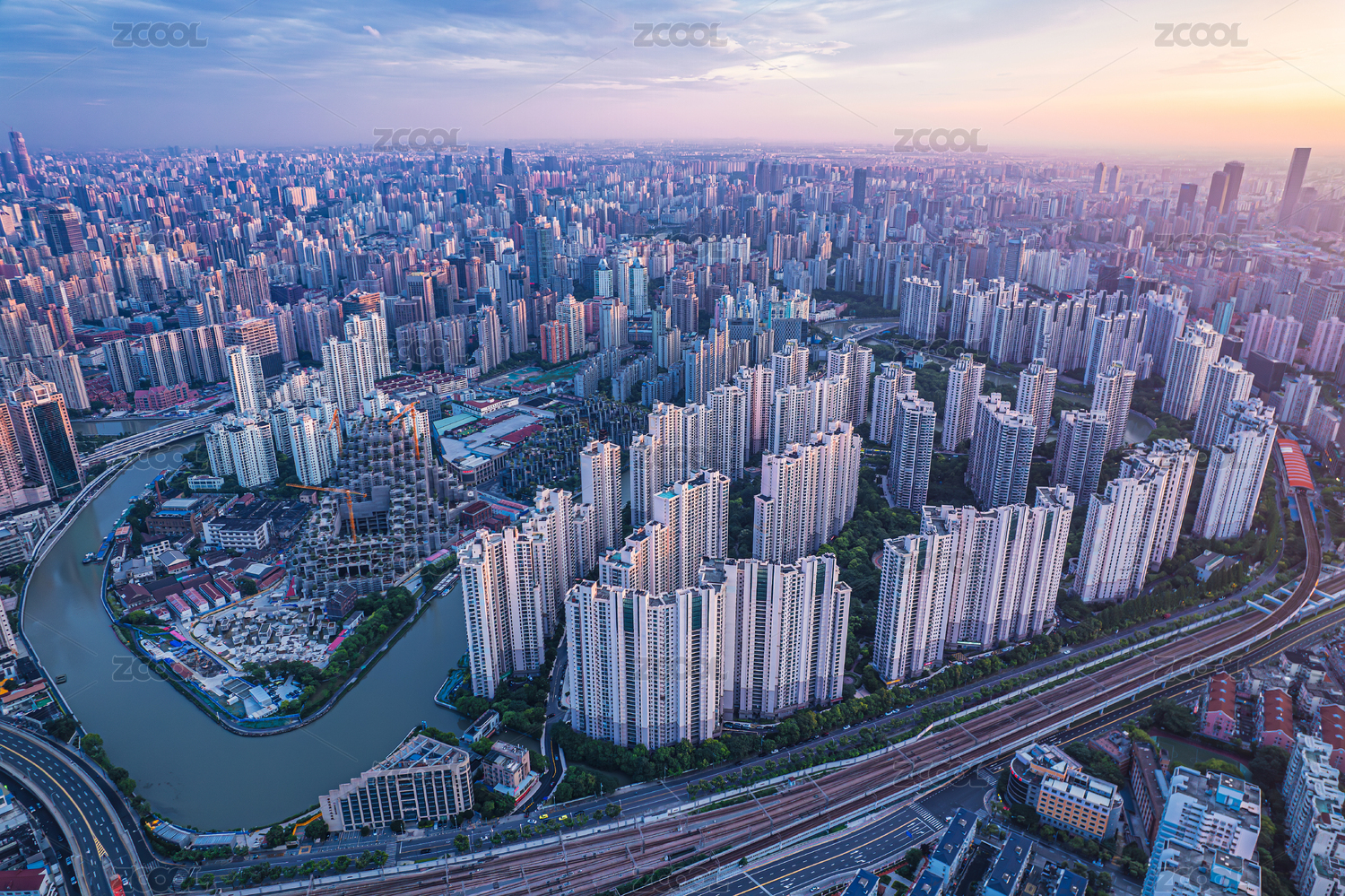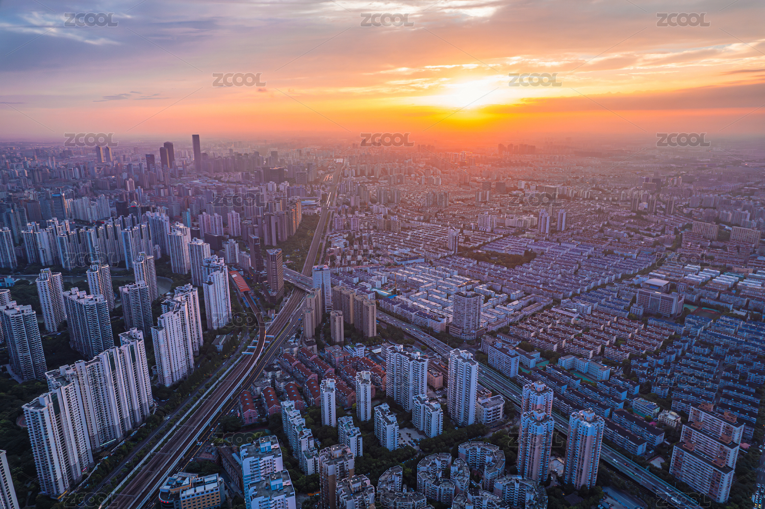 晚霞中城市鳥(niǎo)瞰