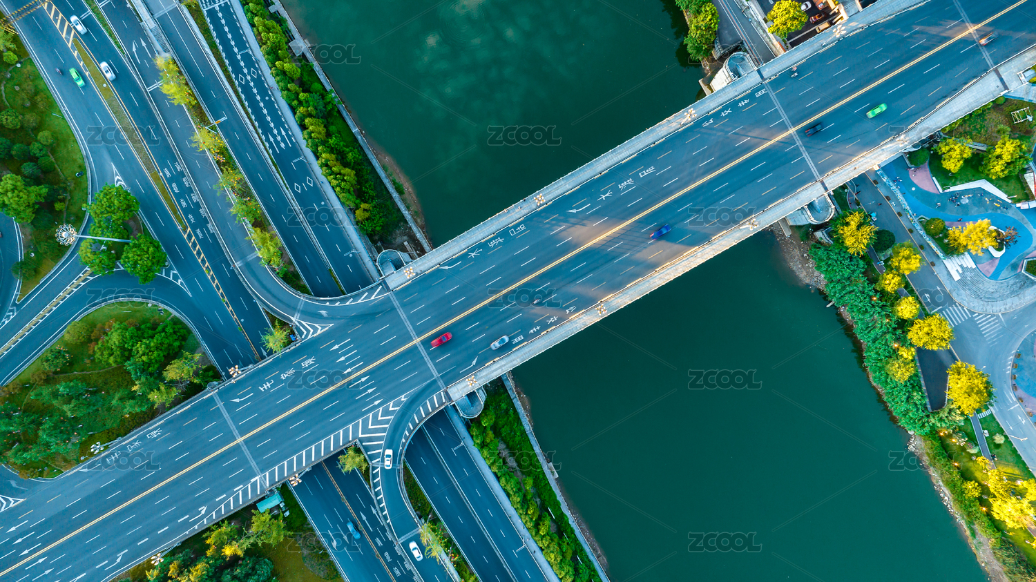 鳥(niǎo)瞰城市公路與汽車(chē)