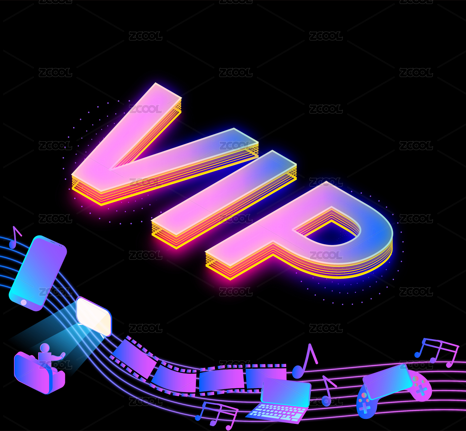 VIP內(nèi)容付費觀看標識放在黑色背景插畫