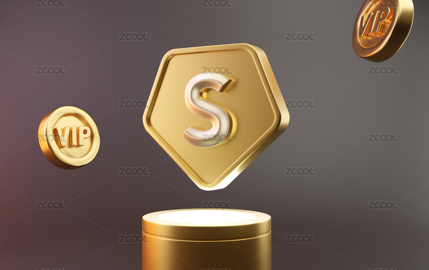 S字母的金色超級VIP鉆石會員五邊形元素