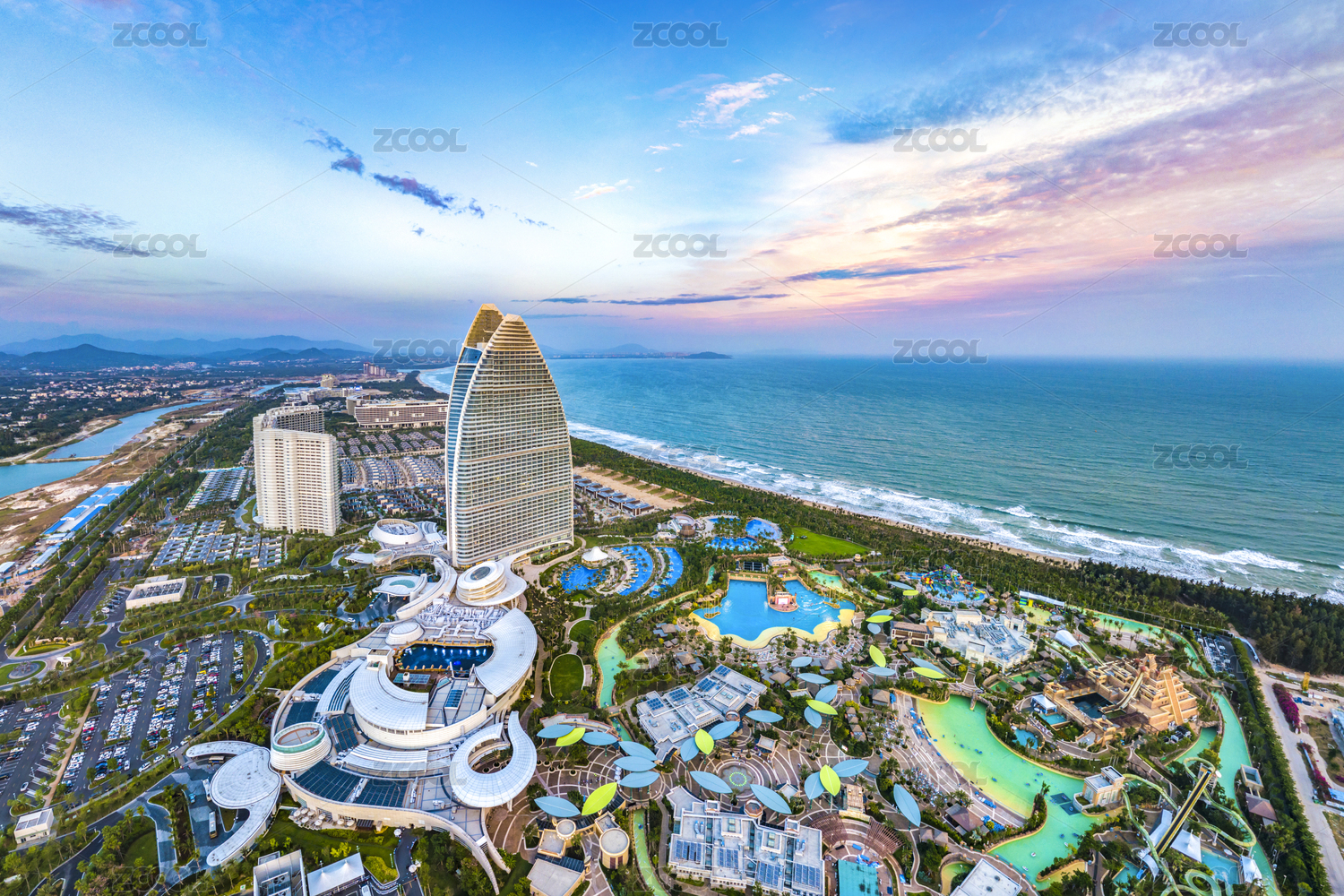 Aerial View of Resort Atlantis Sanya and Aquaventure Waterpark at Haitang Bay Sanya in Hainan Island of China