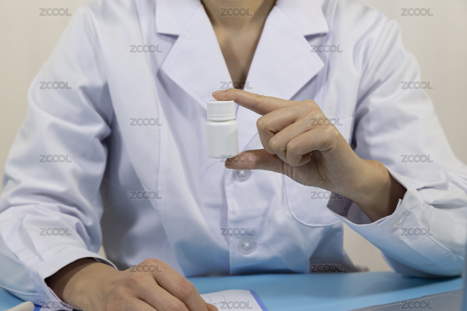 穿白大褂的醫(yī)生工作中的局部特寫概念背景