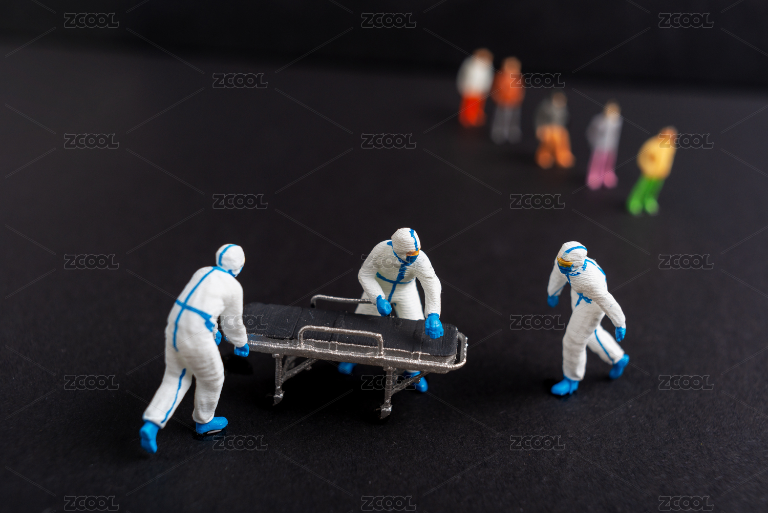 三名穿防護服推擔(dān)架車的醫(yī)生工作者