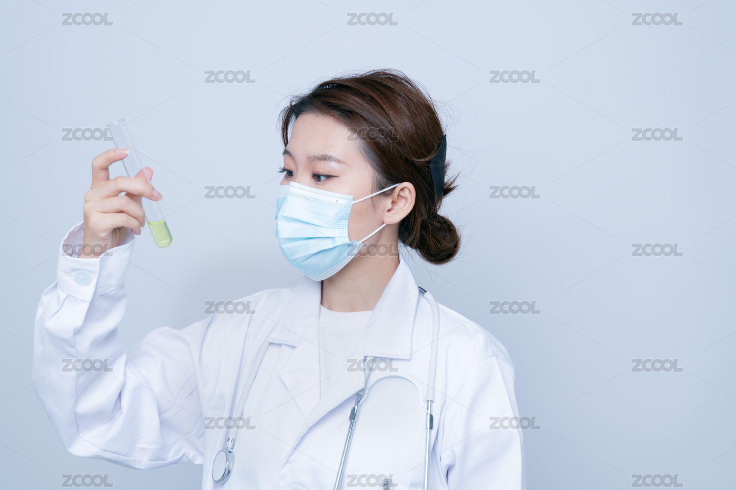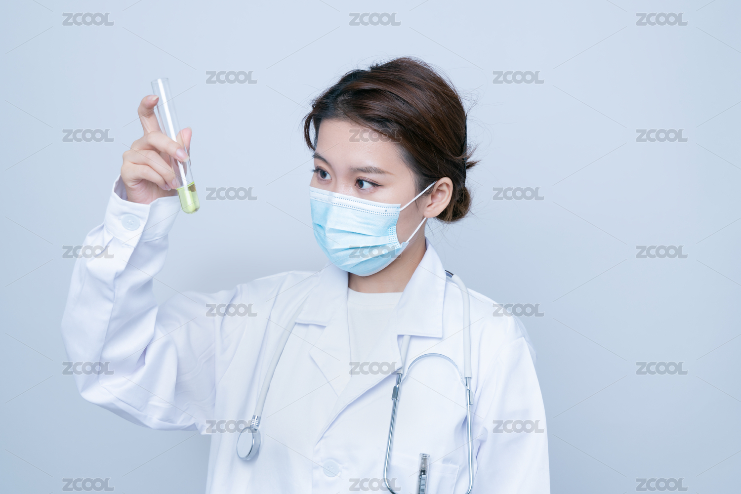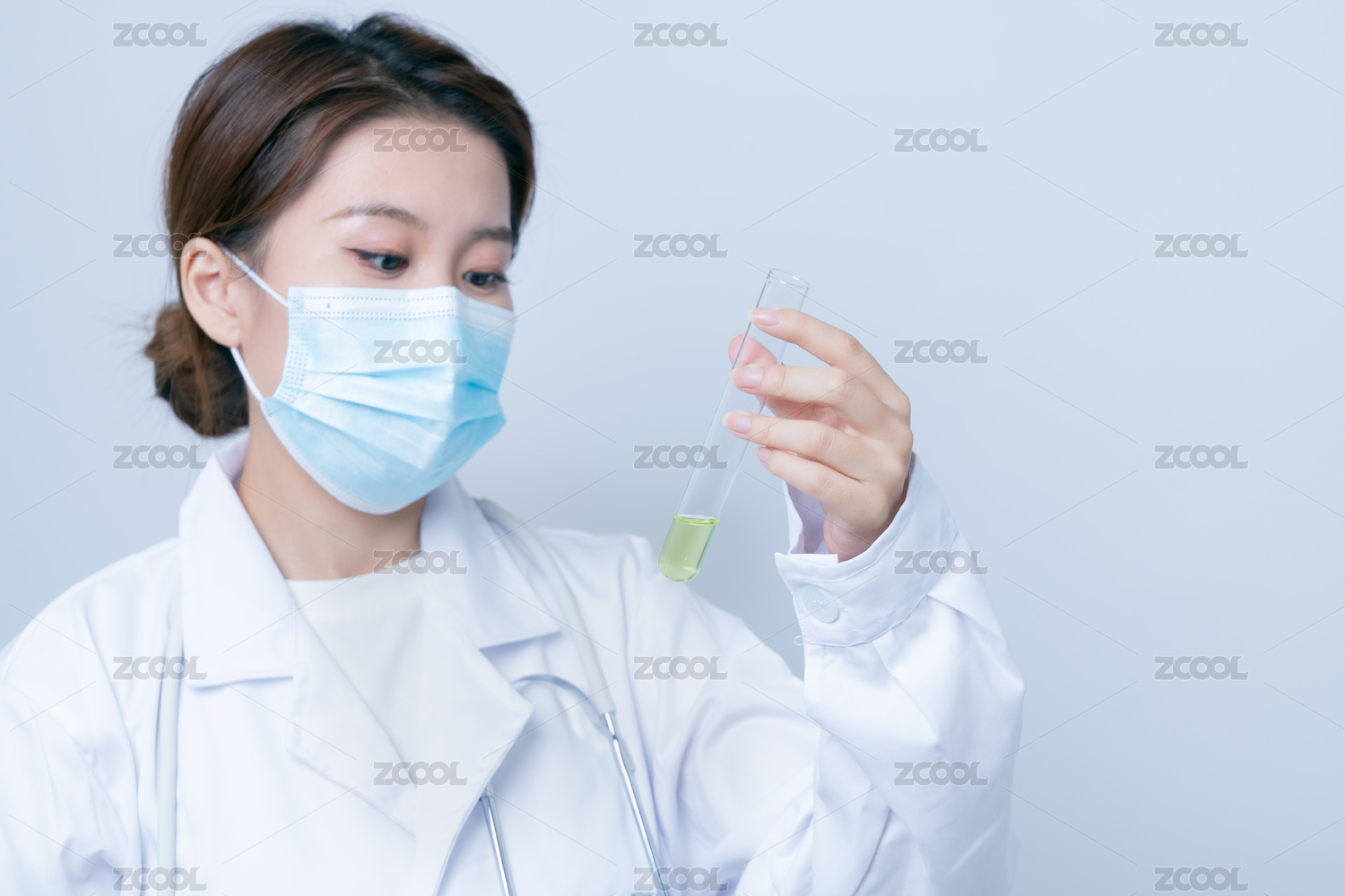 一位年輕女性醫(yī)生手持試管