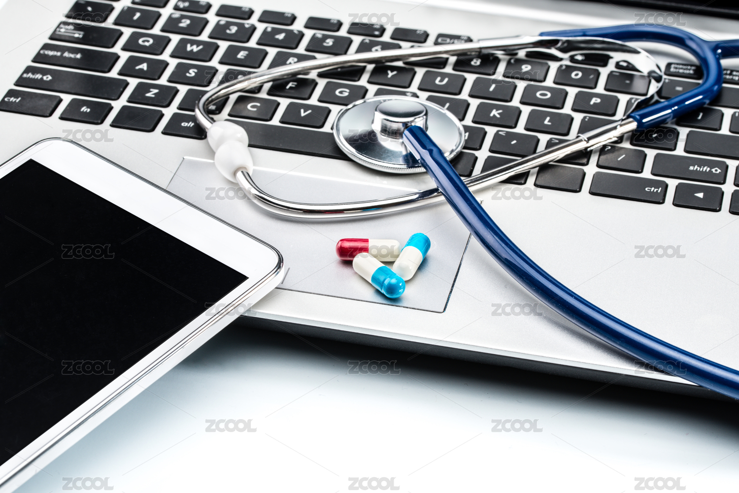 醫(yī)學(xué)研究,聽診器,膠囊和片劑數(shù)碼筆記本電腦鍵盤,醫(yī)生工作場所