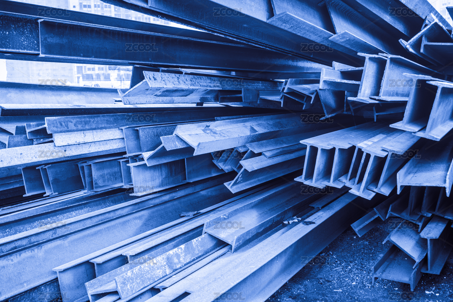 建筑工地成堆的鋼材