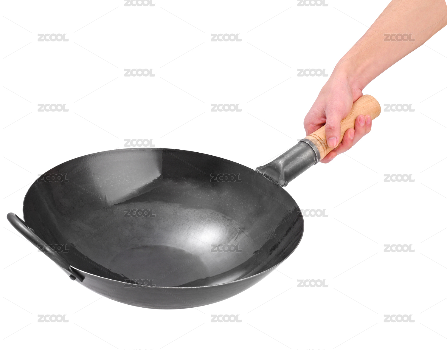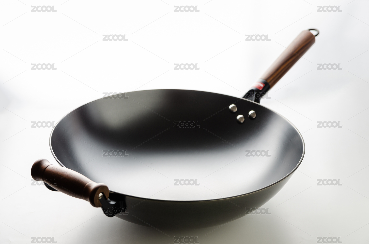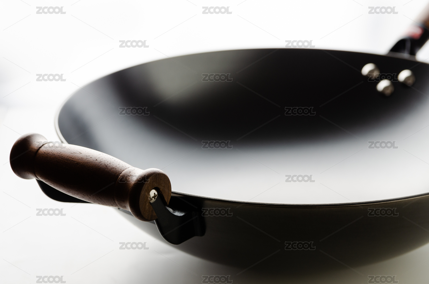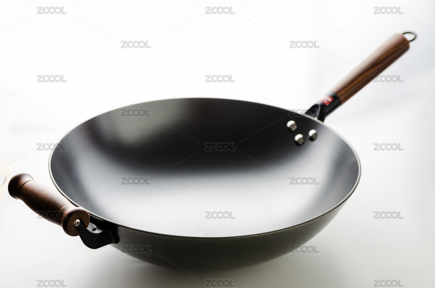 家庭廚房專(zhuān)用的鐵炒鍋特寫(xiě)白色背景底圖