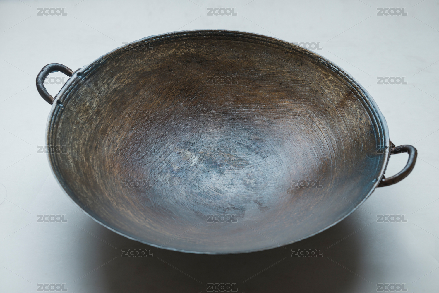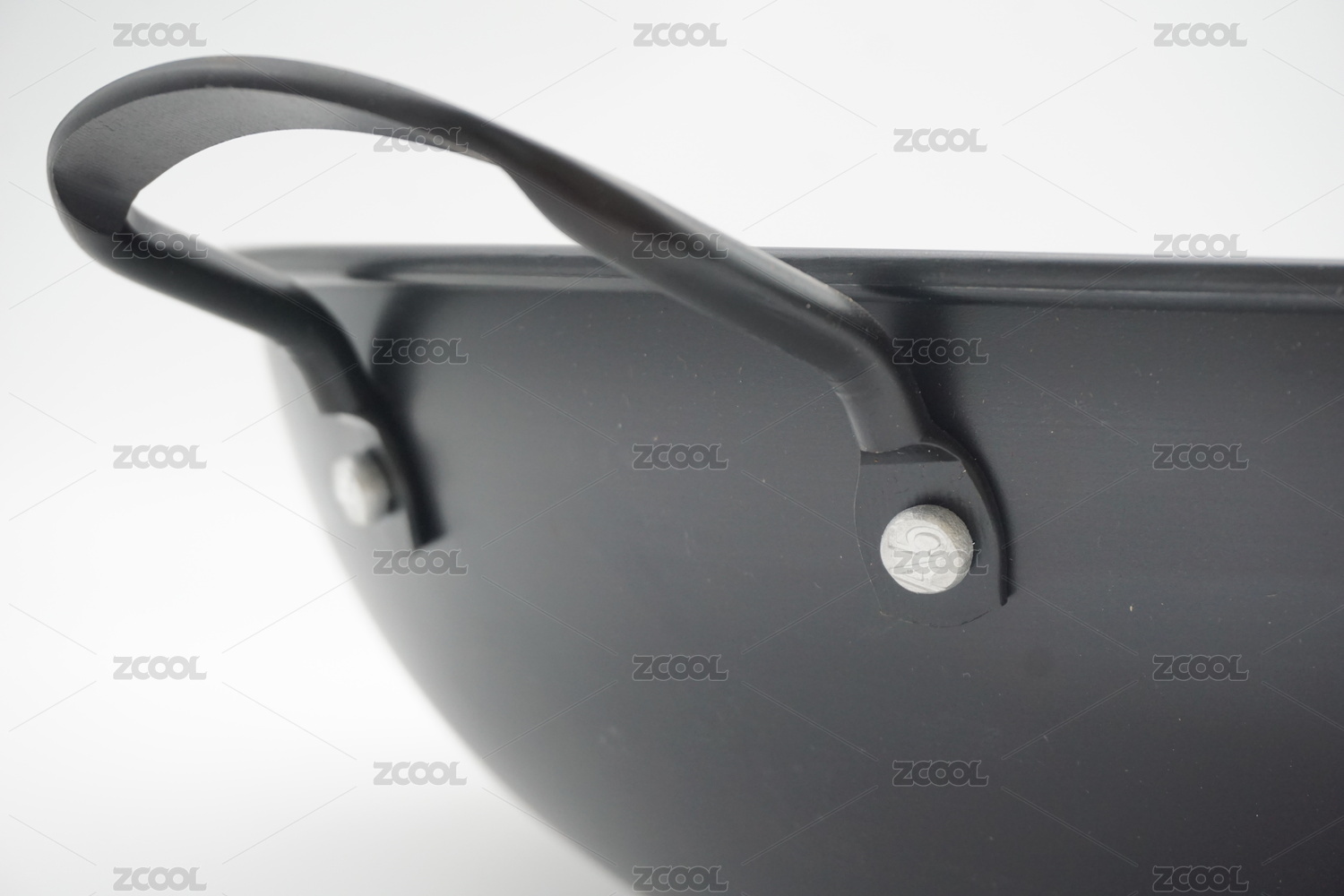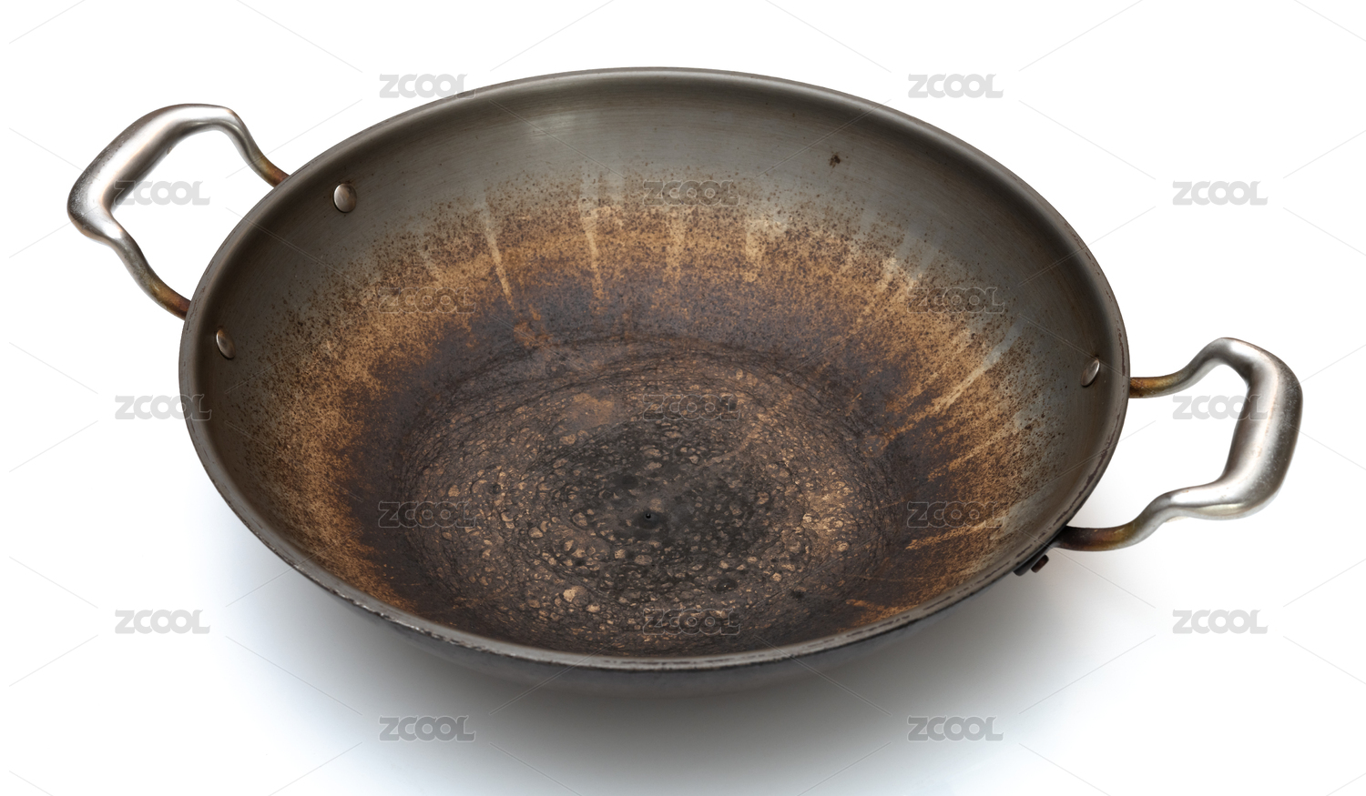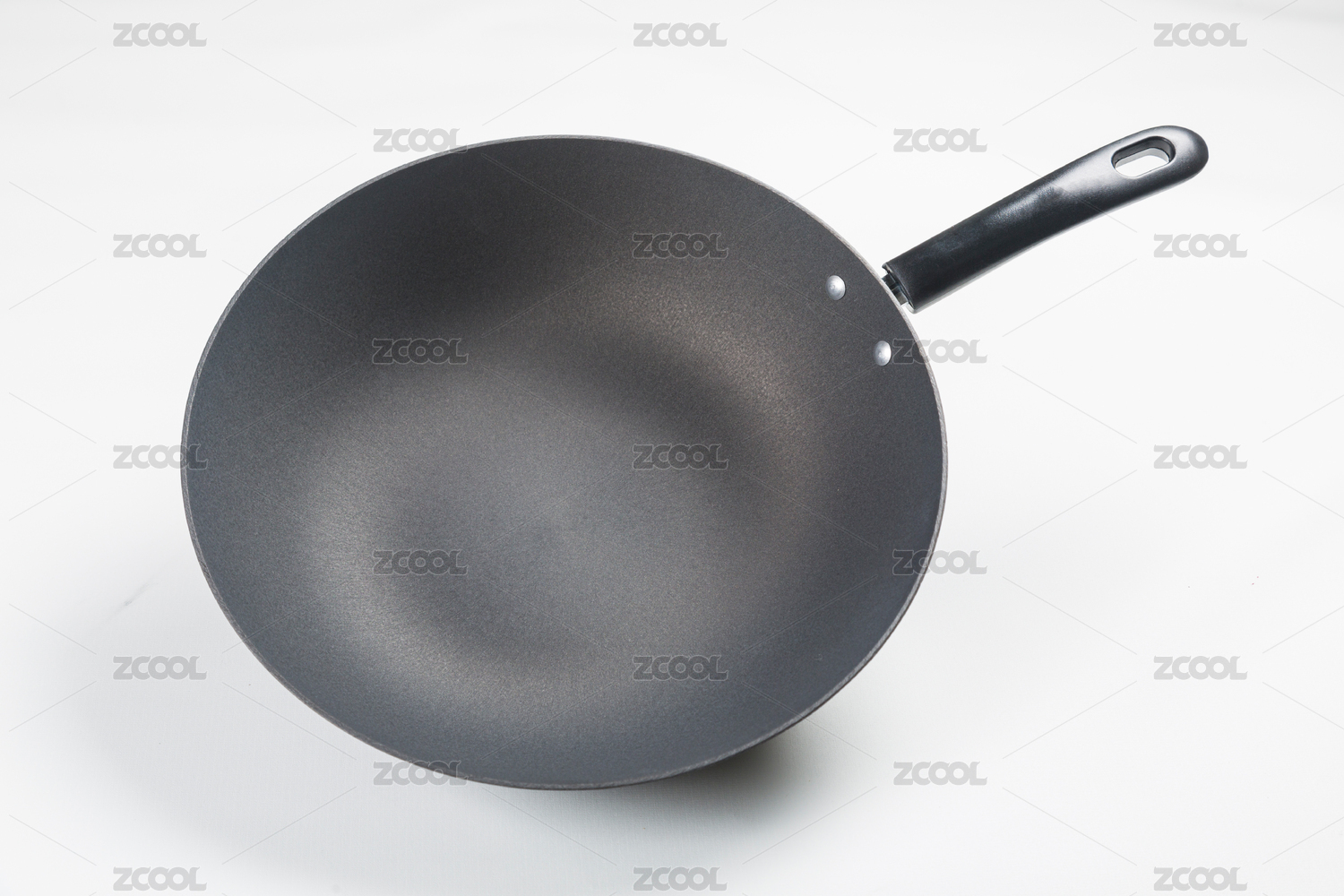 家庭廚房專(zhuān)用的鐵炒鍋特寫(xiě)白色背景底圖