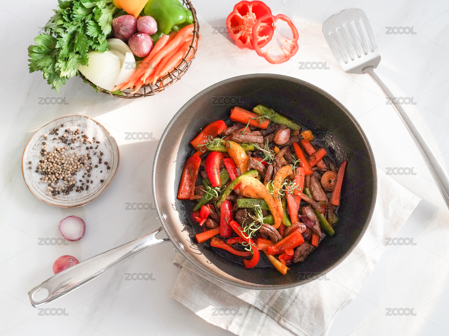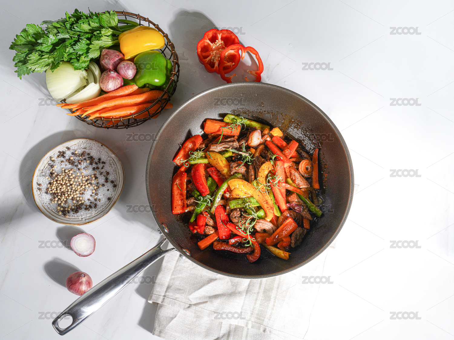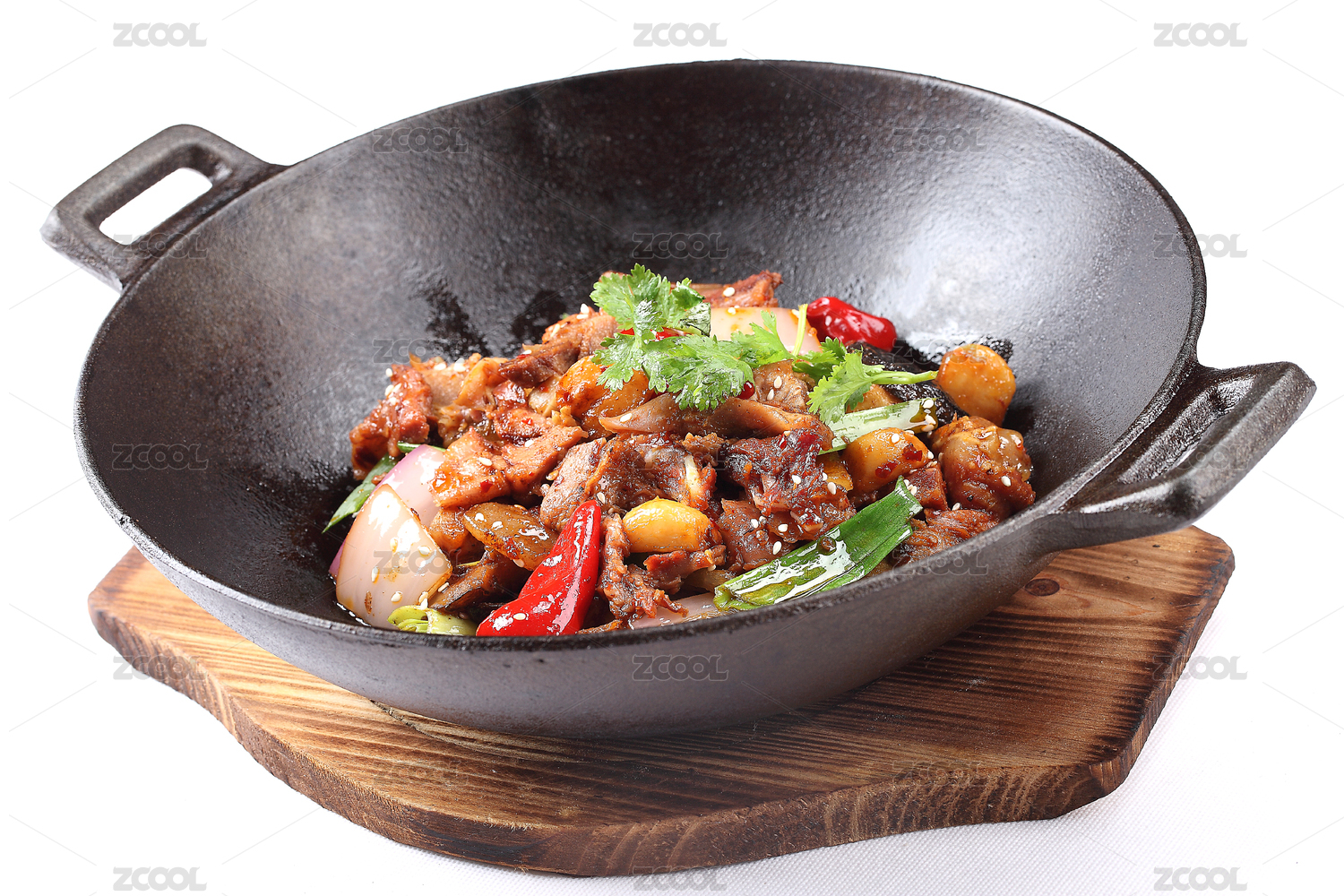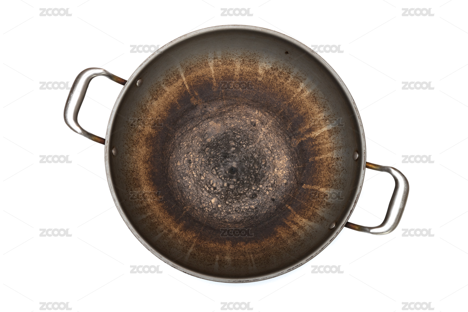 家庭廚房專(zhuān)用的鐵炒鍋特寫(xiě)白色背景底圖