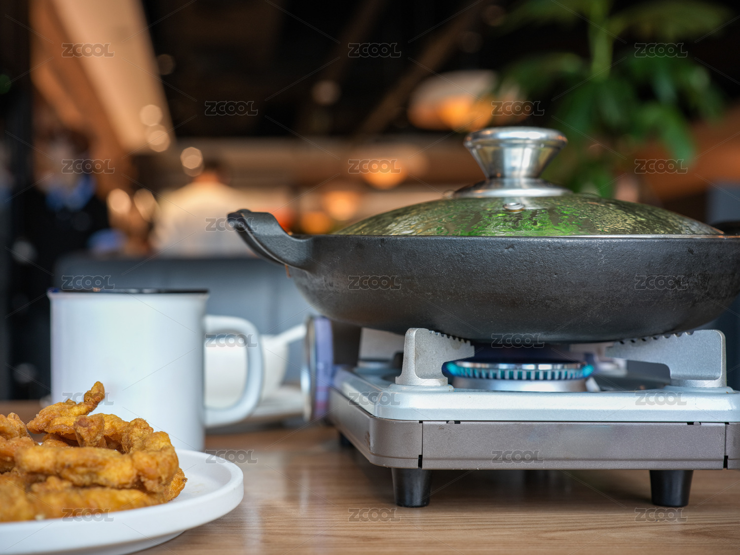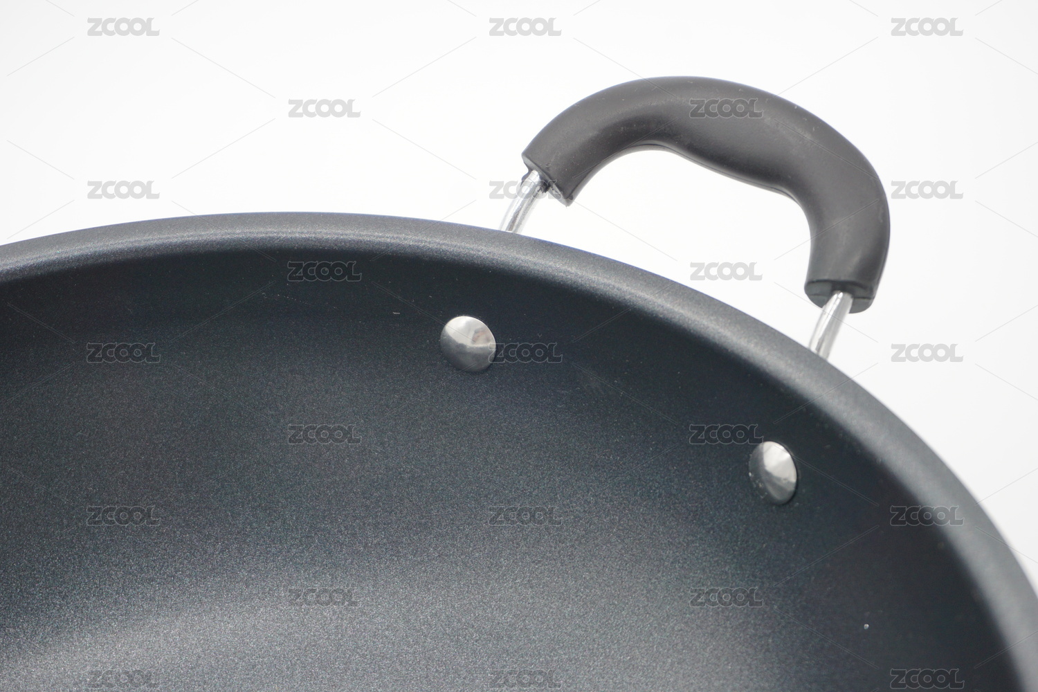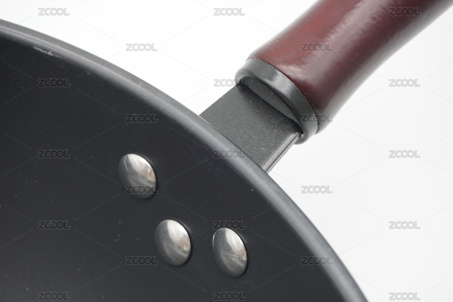 家庭廚房專(zhuān)用的鐵炒鍋邊緣特寫(xiě)