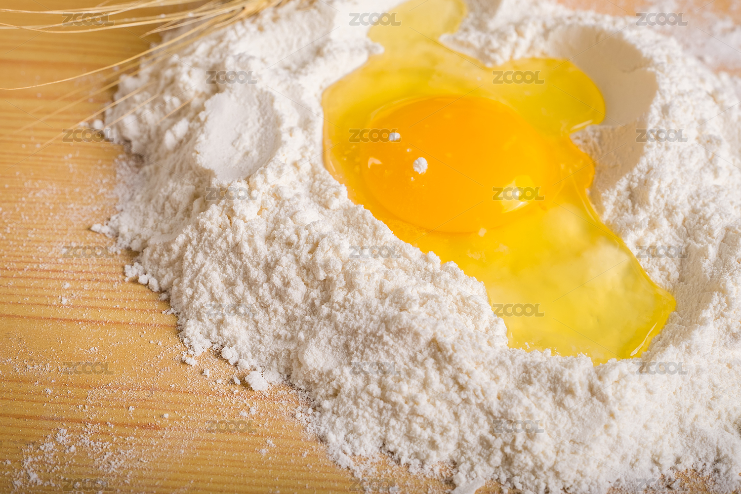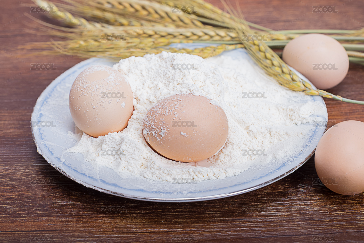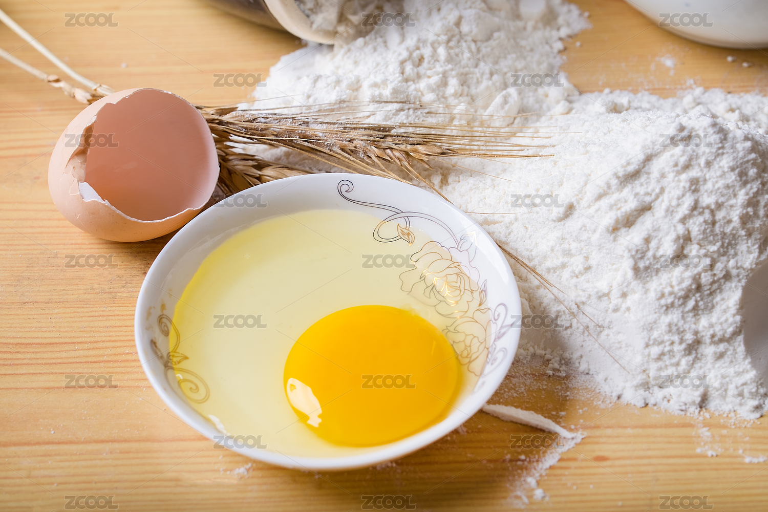 家庭制作餅干的現(xiàn)場桌面上放著的原材料面粉雞蛋等