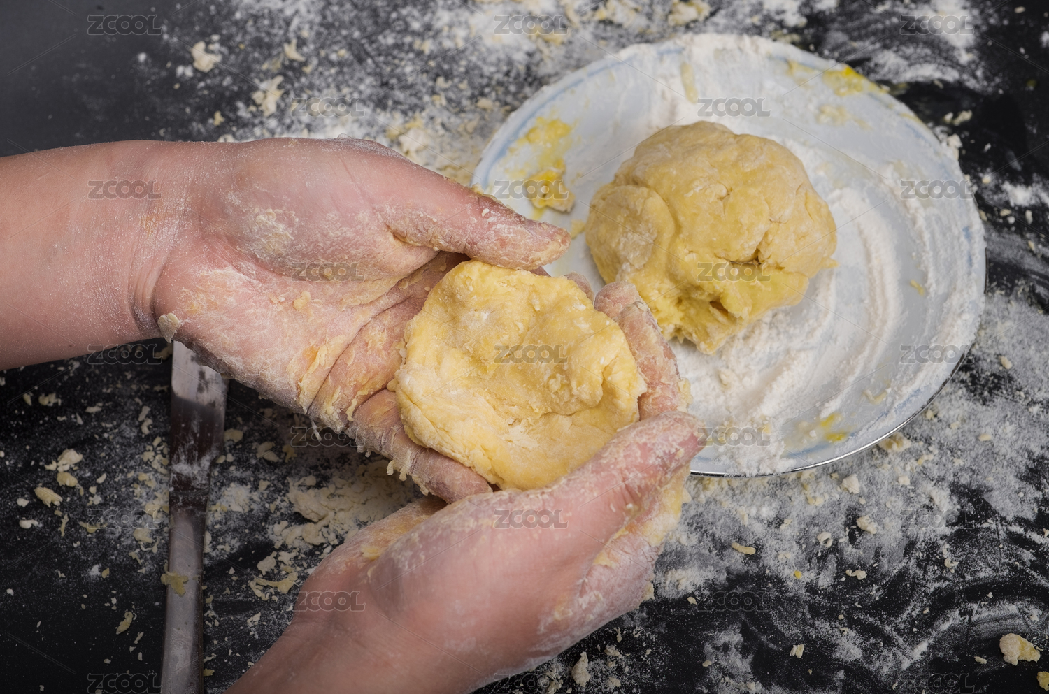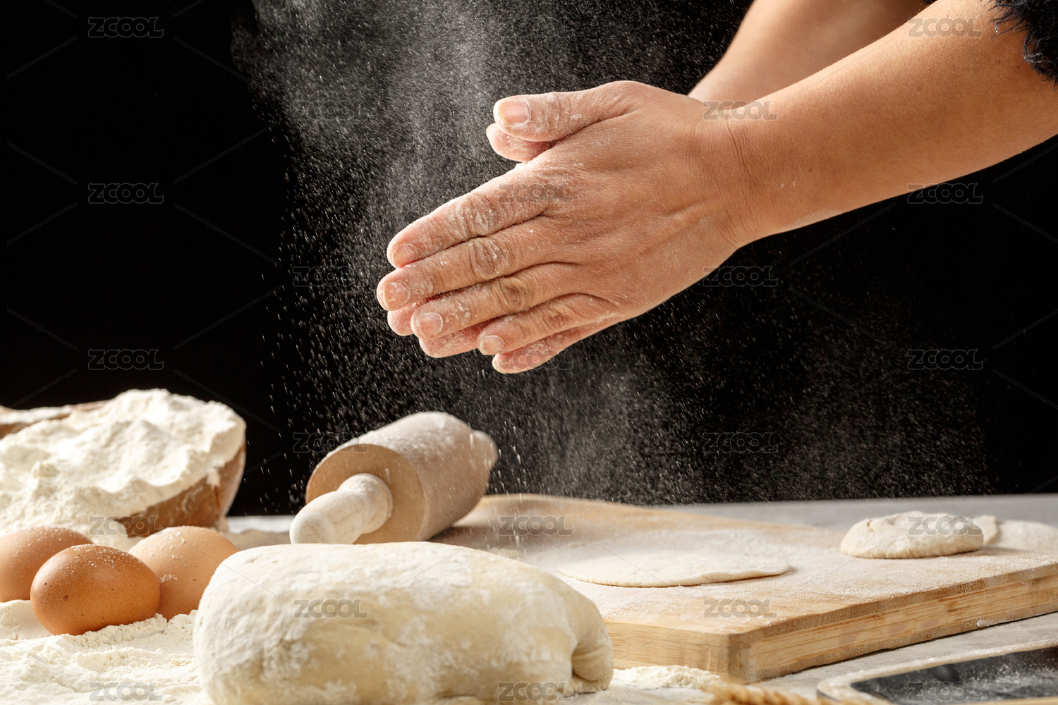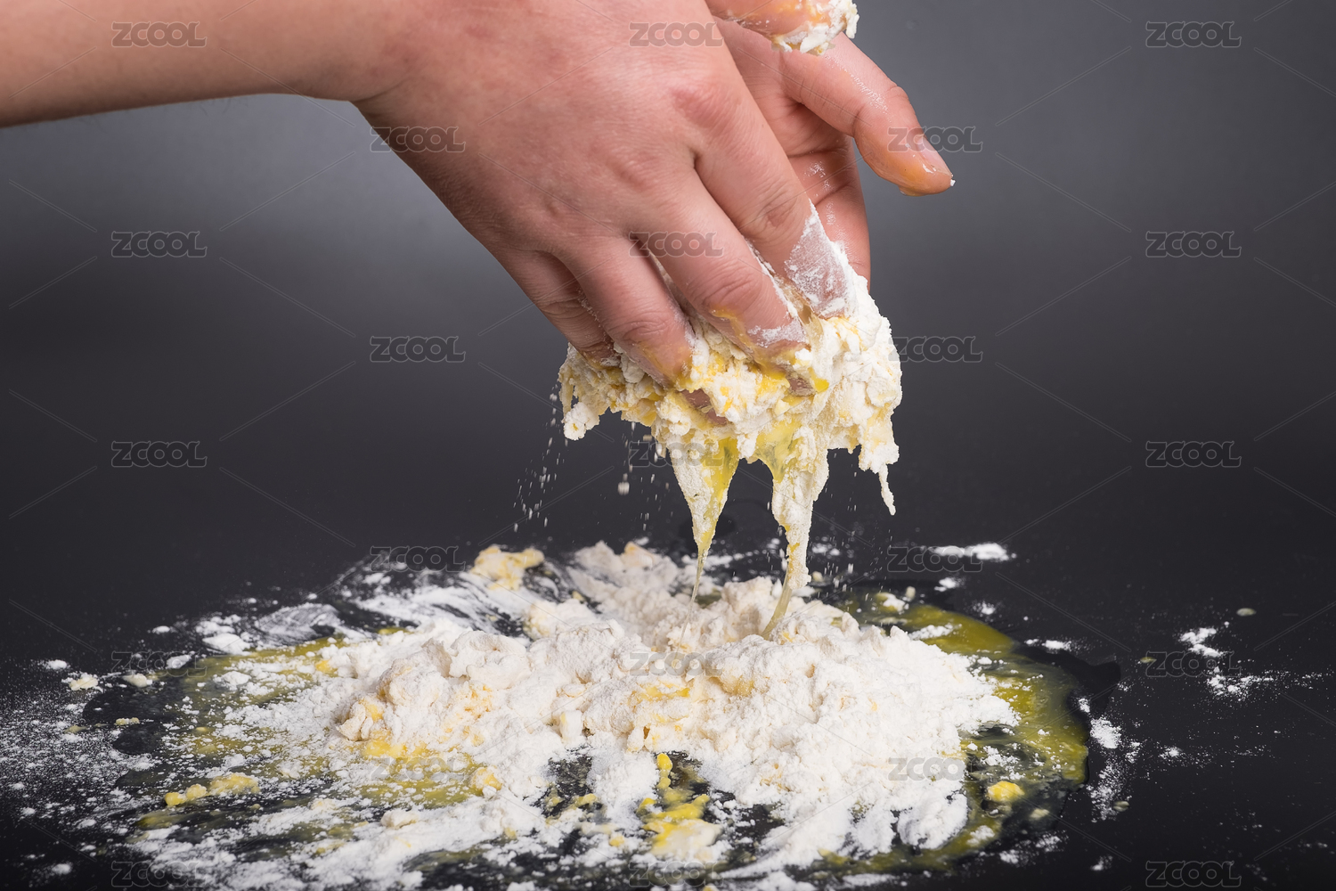 烘焙中將面粉和材料攪拌機(jī)攪拌