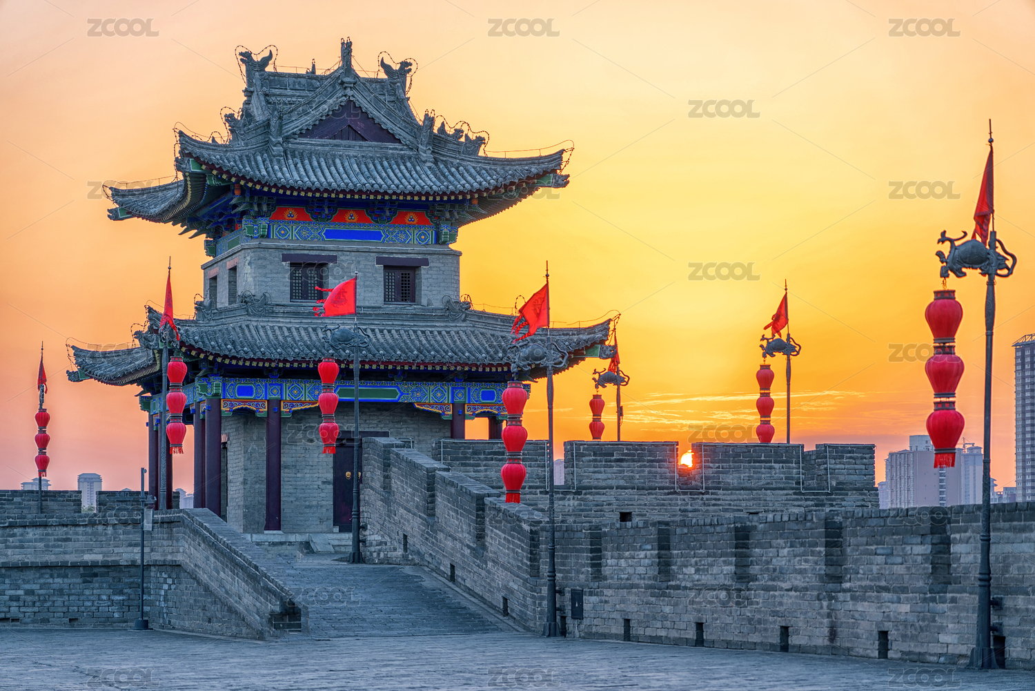中國(guó)山西省大同市明代古城墻園林建筑