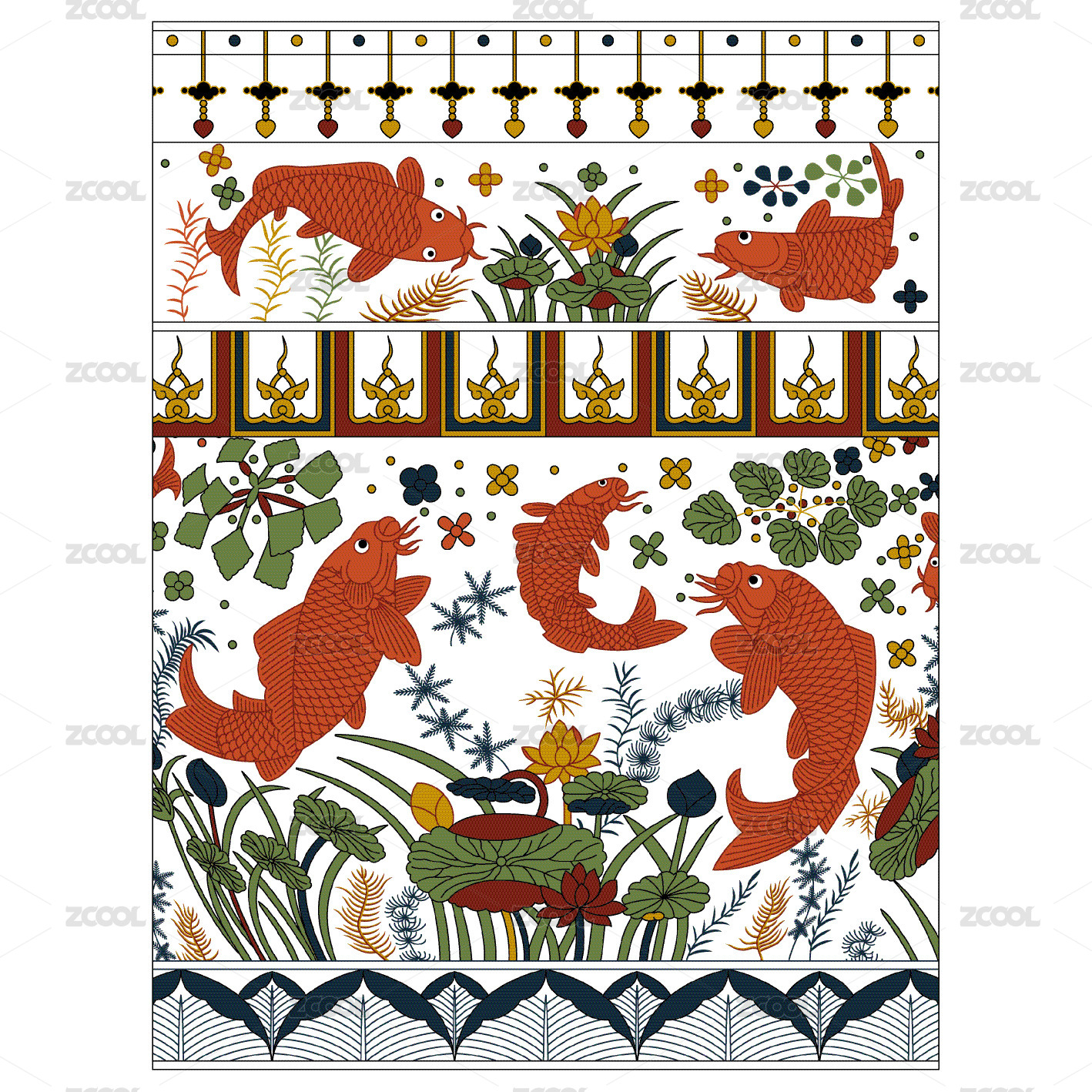 明代四合如意團(tuán)花天華錦中國(guó)紋樣插畫(huà)