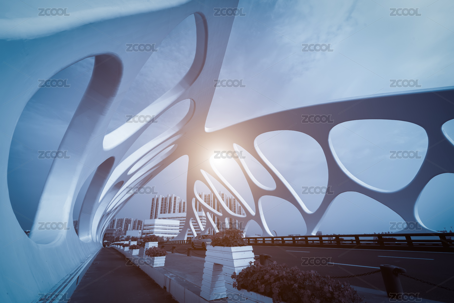 中國(guó)山東省青島西海岸地標(biāo)珊瑚貝橋夜景
