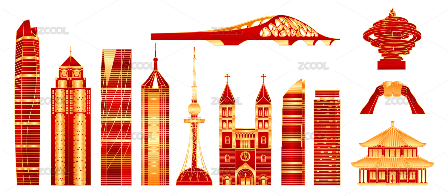 山東青島城市地標(biāo)建筑矢量插畫(huà)