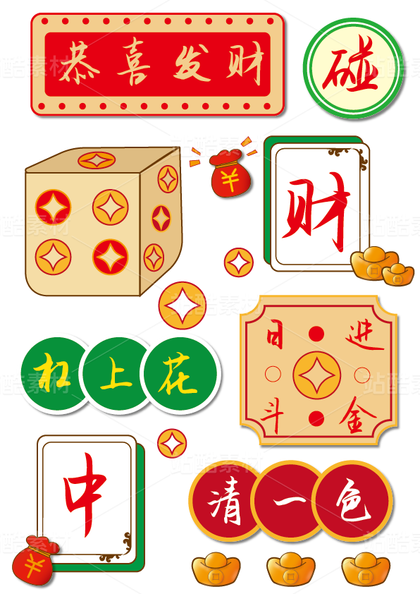 創(chuàng)意 國(guó)潮風(fēng) 麻將 發(fā)財(cái) png免扣素材 透明元素