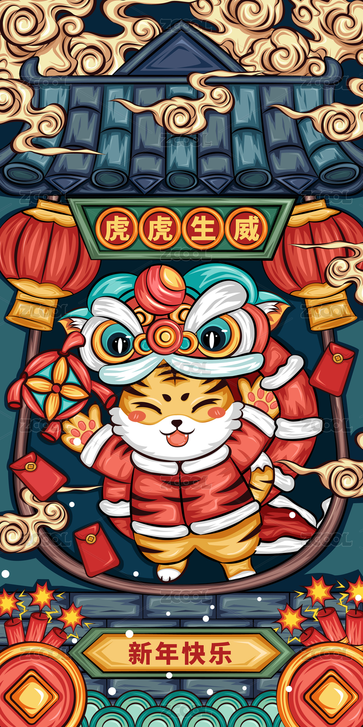 新年快樂(lè)虎年形象國(guó)潮風(fēng)