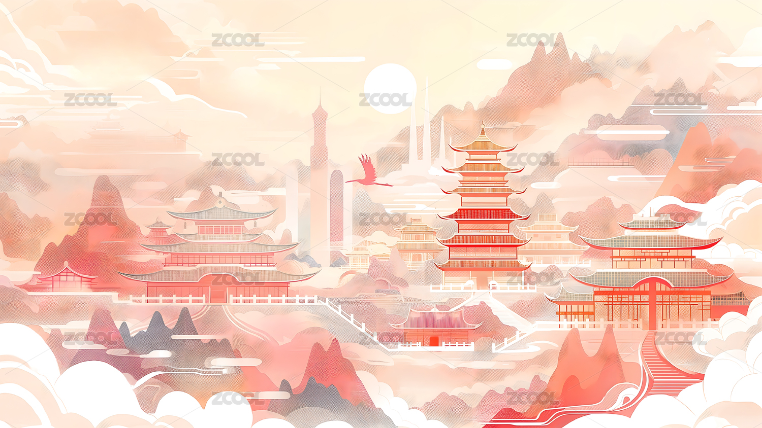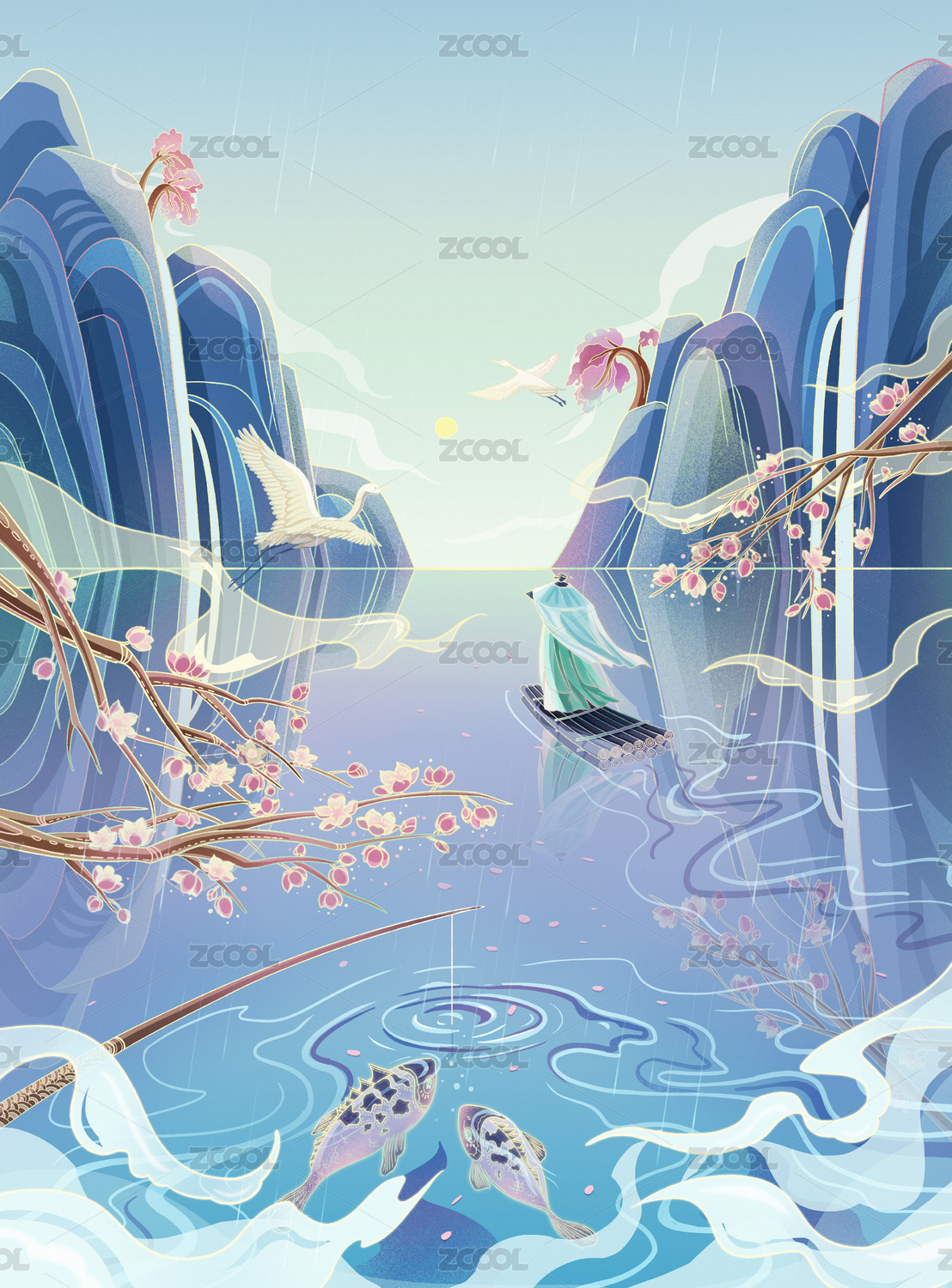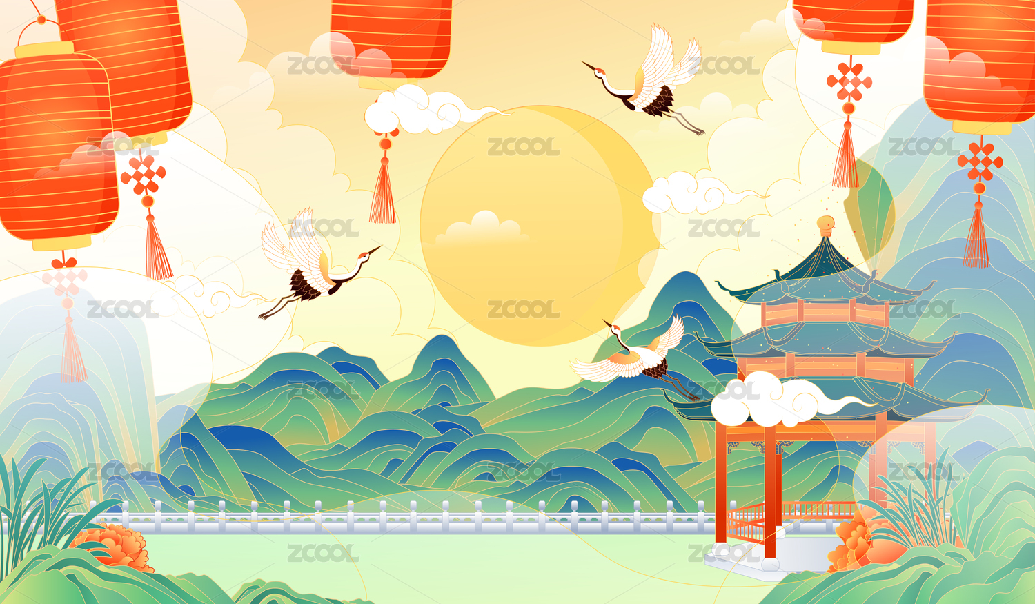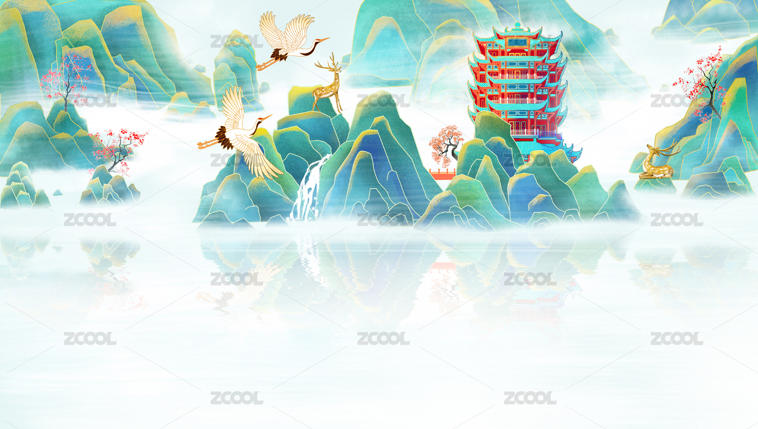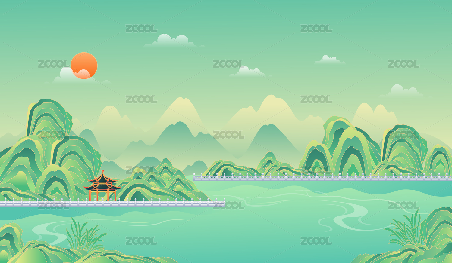 國(guó)潮風(fēng)山水背景插畫(huà)