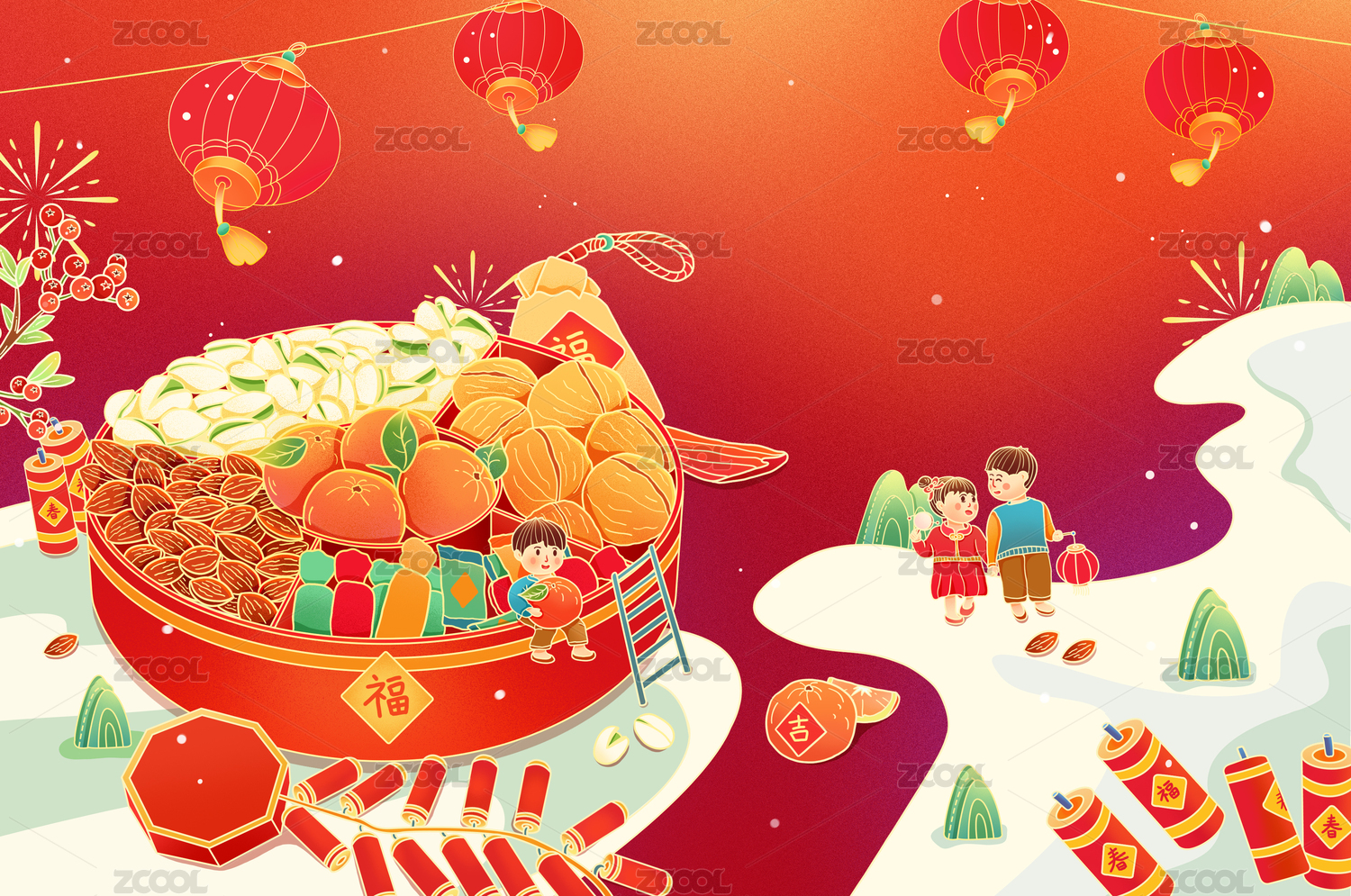國(guó)潮風(fēng)年貨節(jié)堅(jiān)果禮盒插畫(huà)