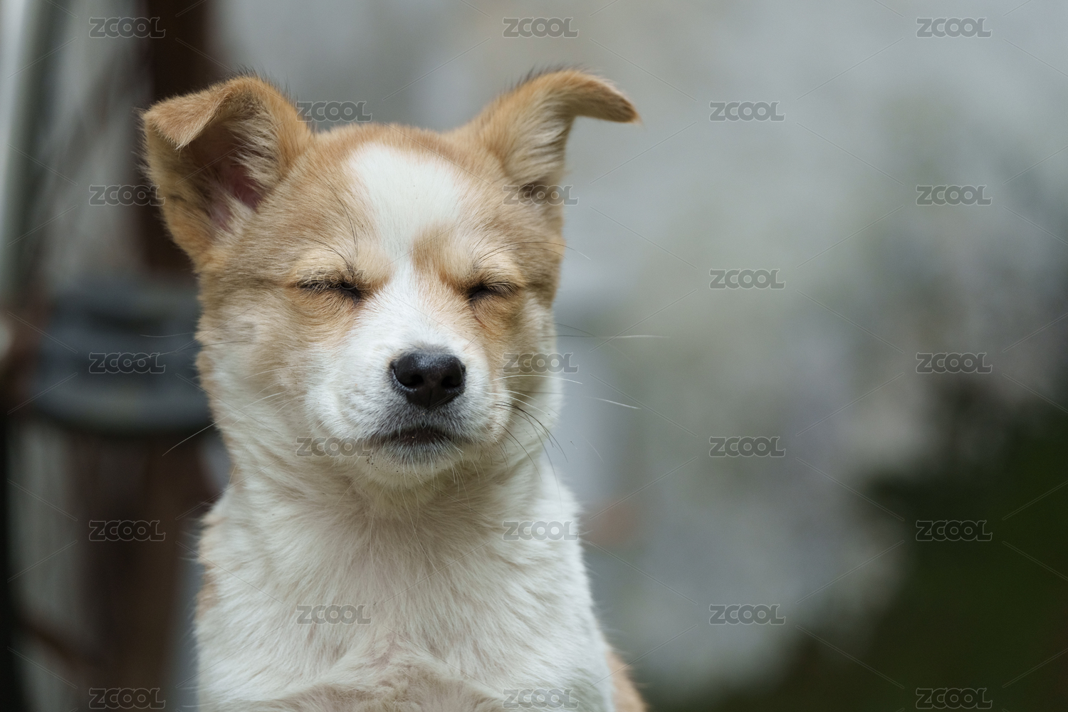 犯困打盹的可愛花白色小狗