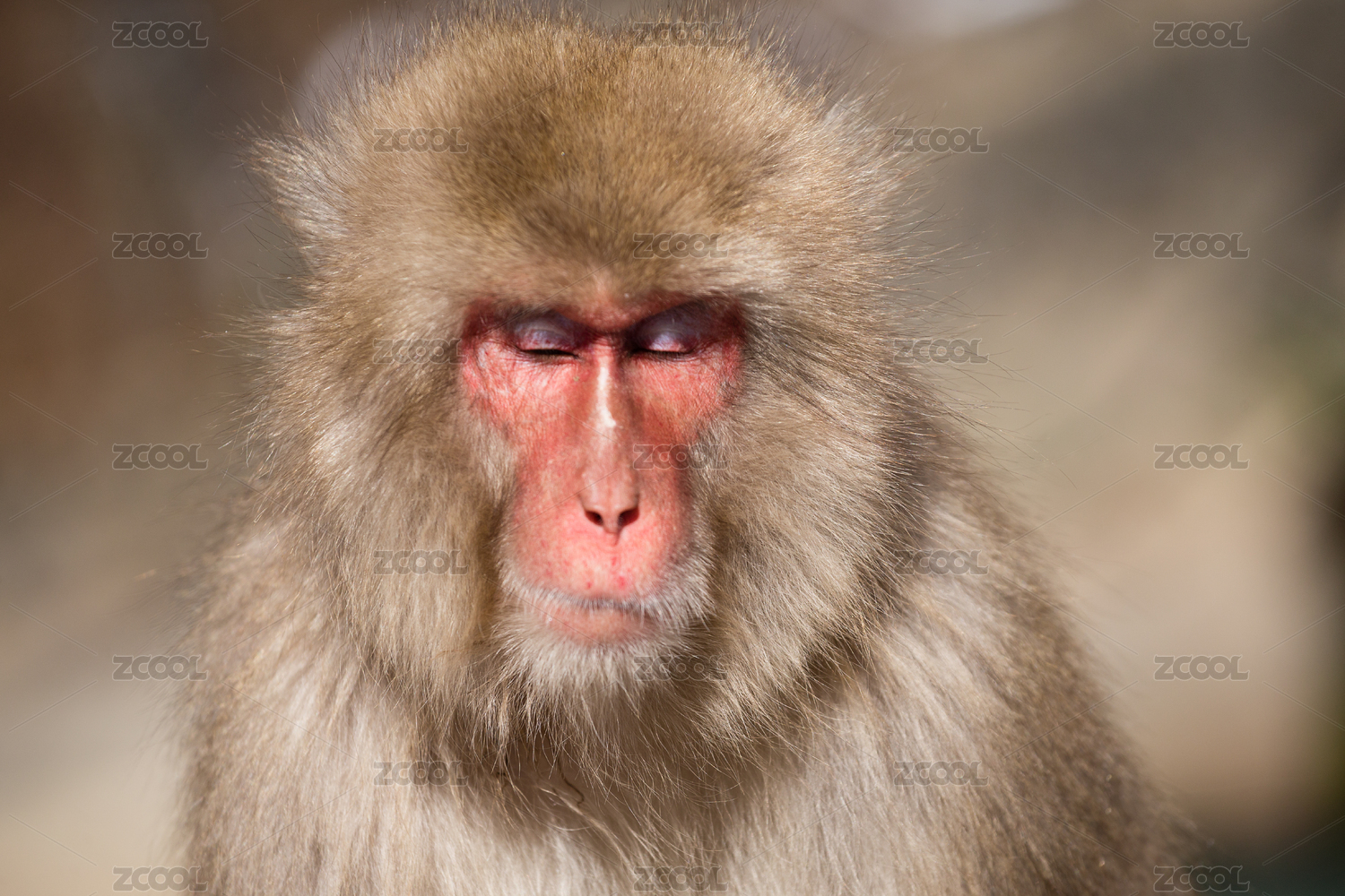 日本長野縣地獄谷的雪猴打盹曬太陽
