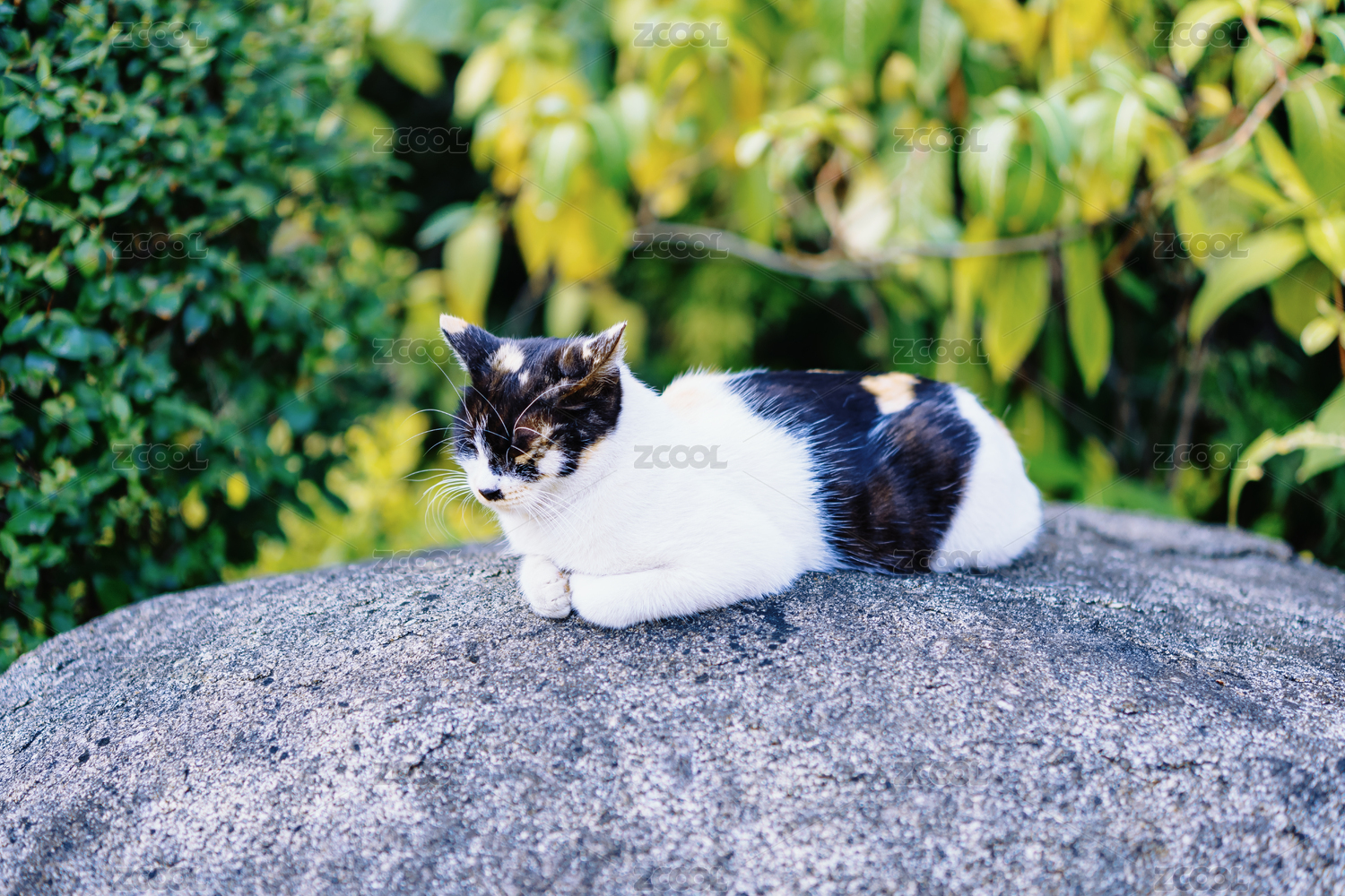 石墩上打盹的貓