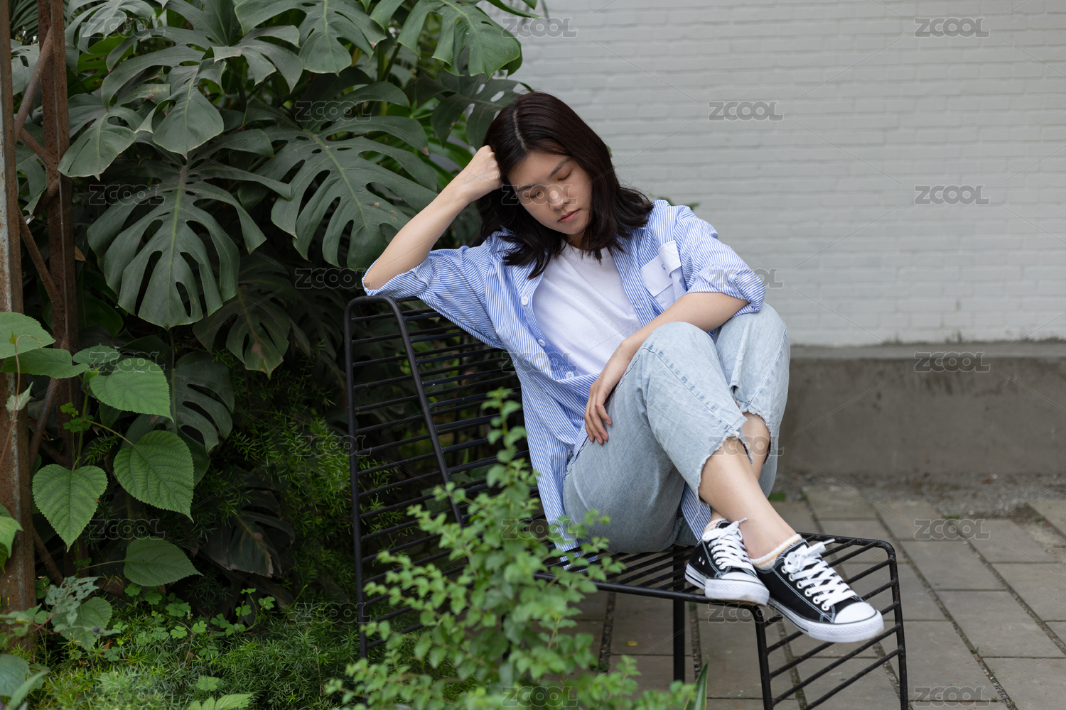 女孩坐在椅子上打盹休息