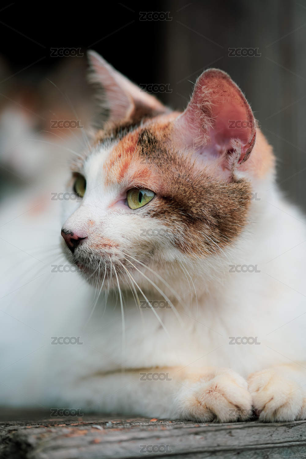 可愛的花色貓咪在木凳上打盹