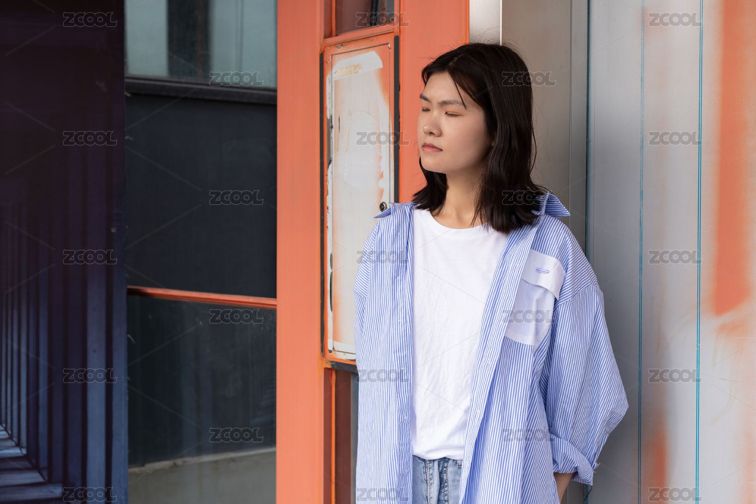 女孩等電梯時(shí)閉著眼睛打盹