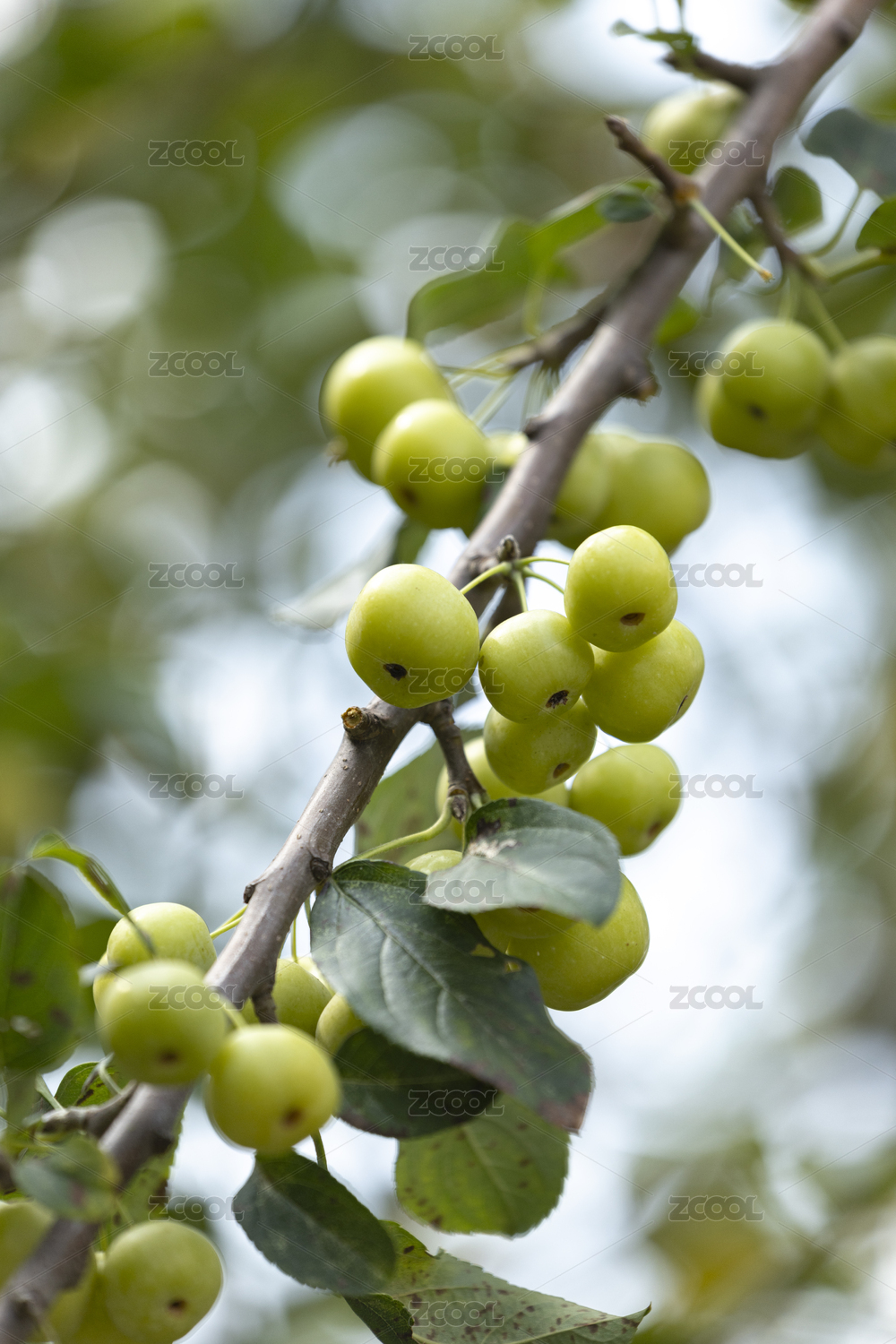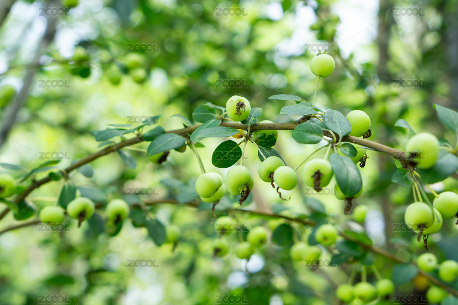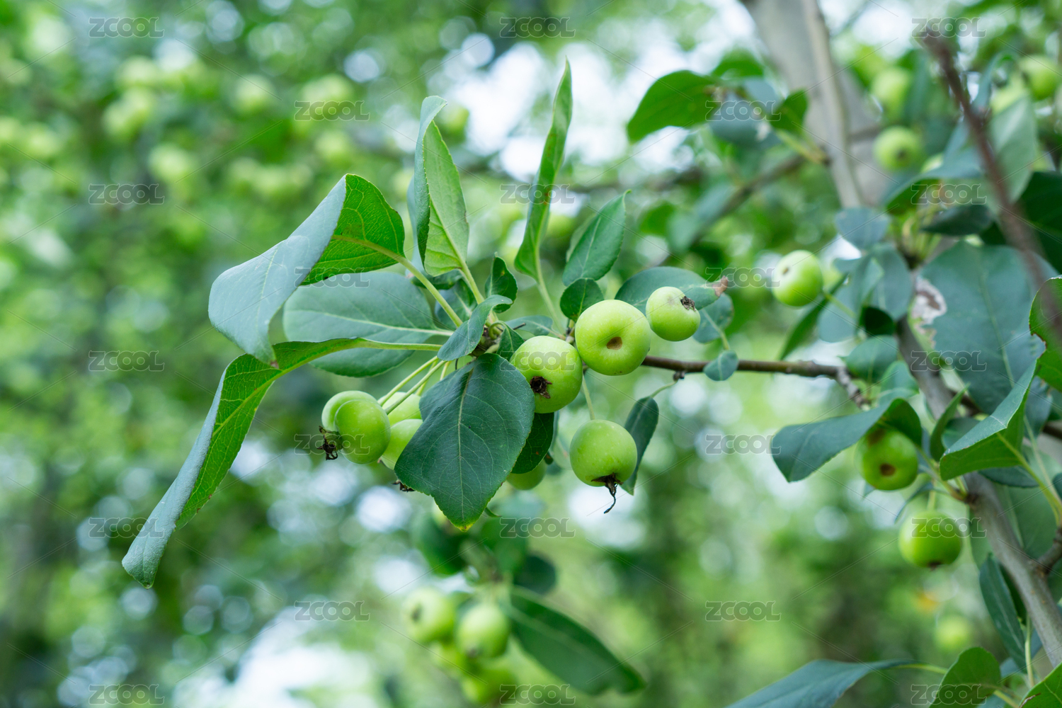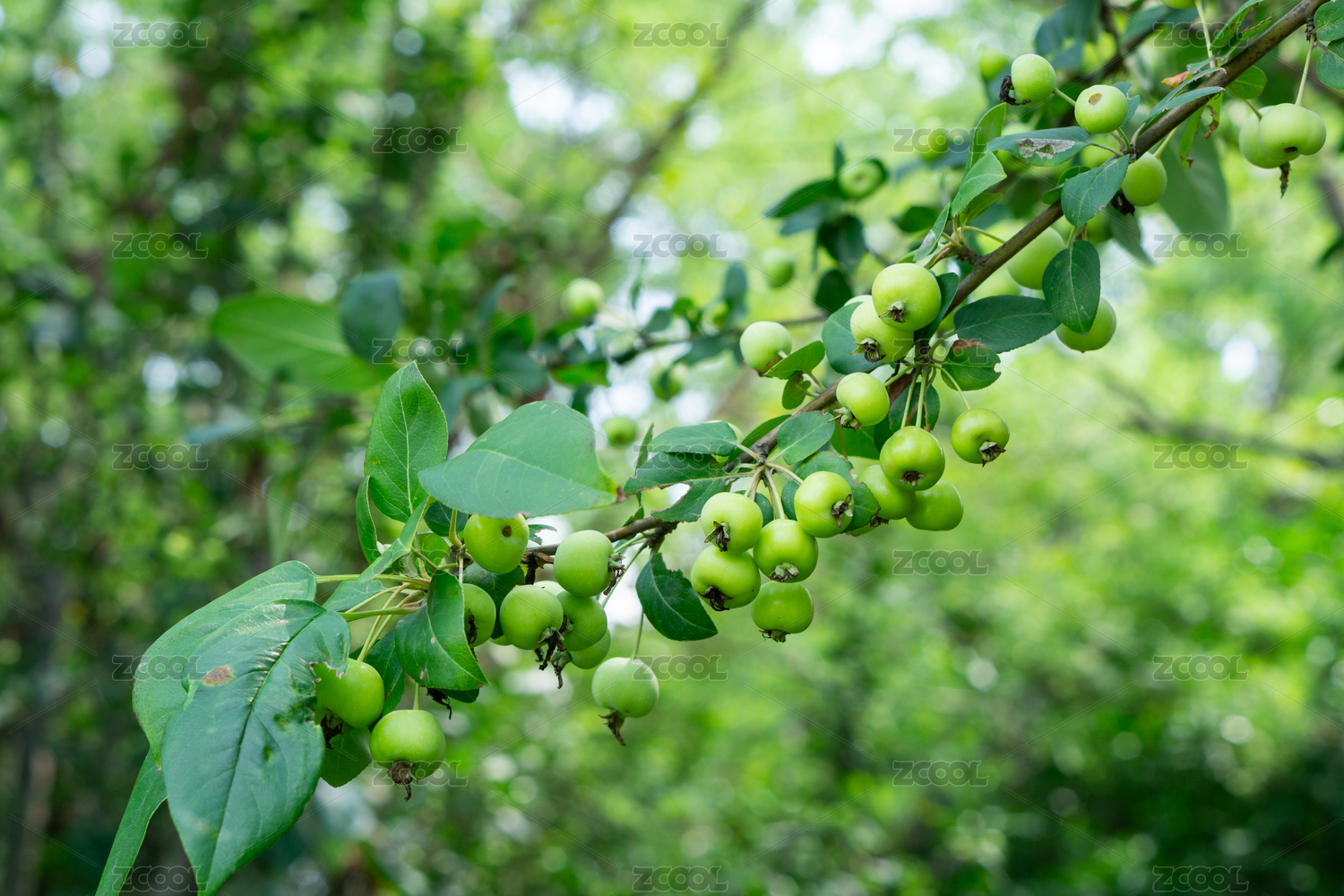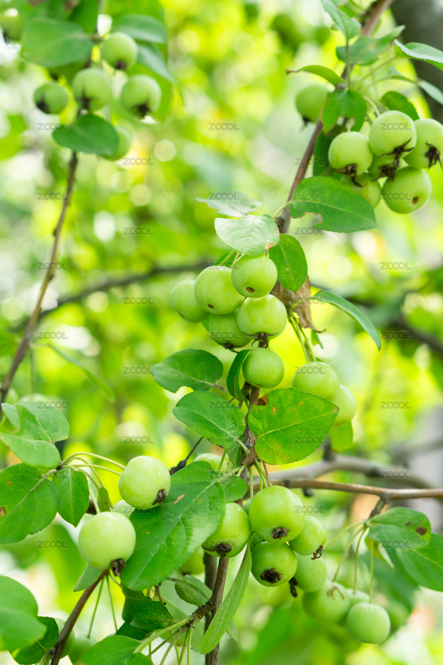 夏天海棠樹上的青色的海棠果