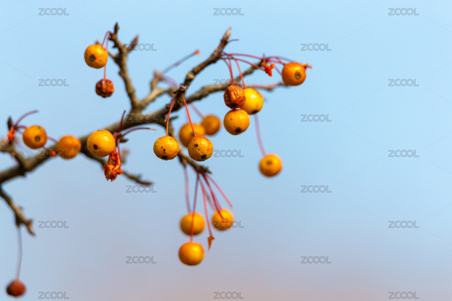 藍(lán)天映襯下的枝頭海棠果