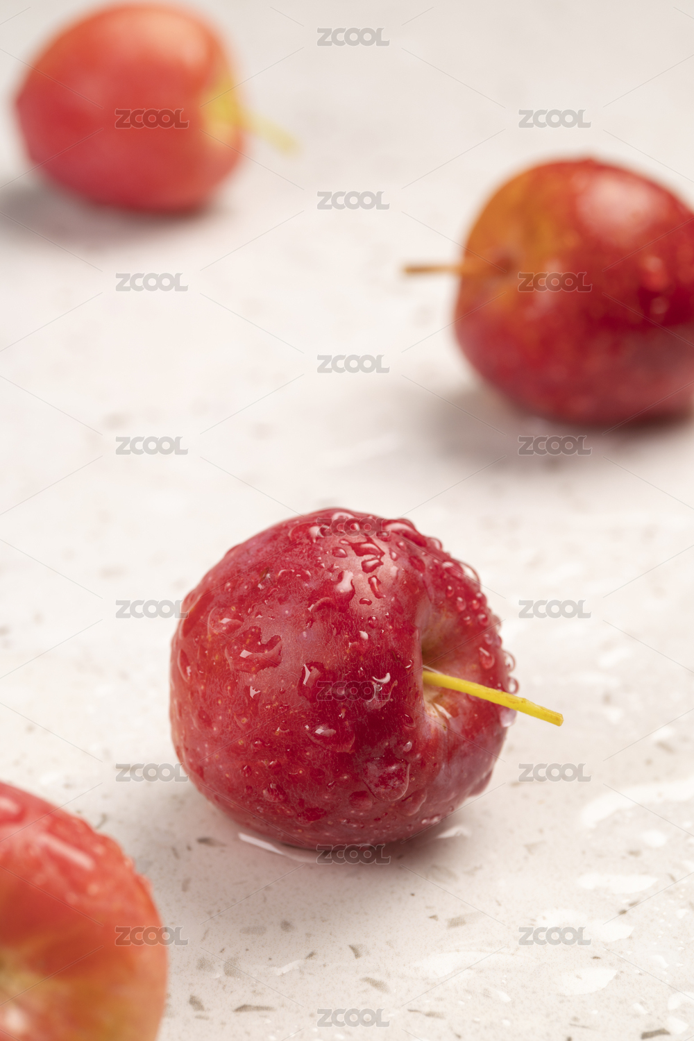 白色背景紅色的海棠果靜物攝影