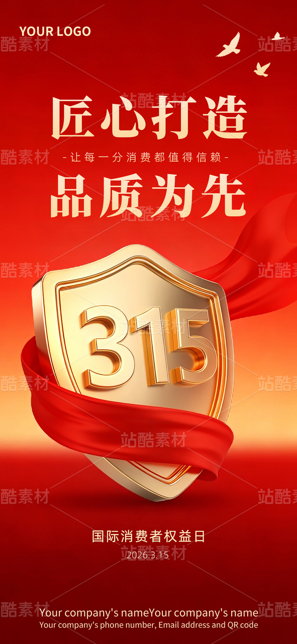 3.15 國際消費(fèi)者權(quán)益日紅金 3D 盾牌誠信海報(bào)