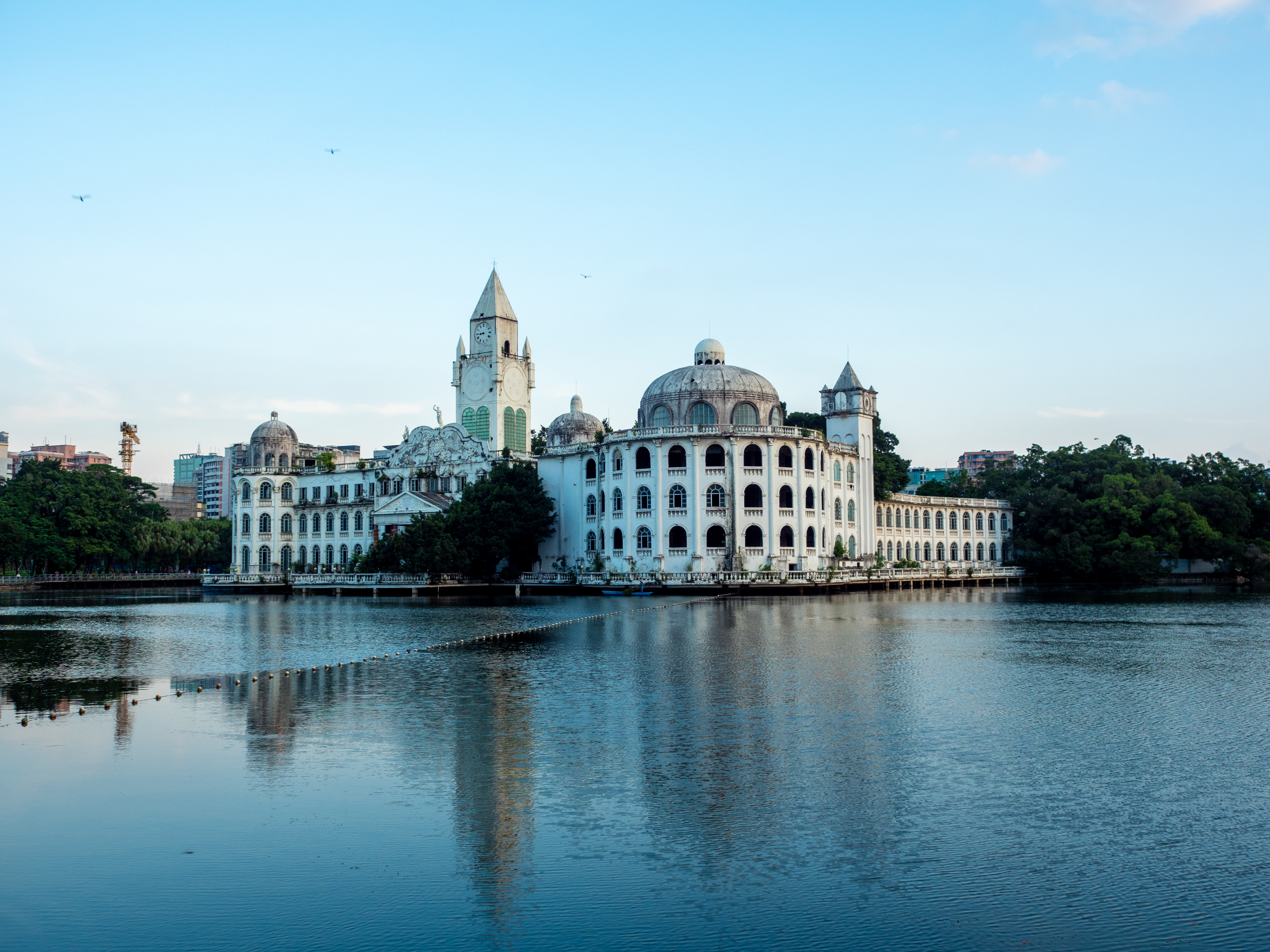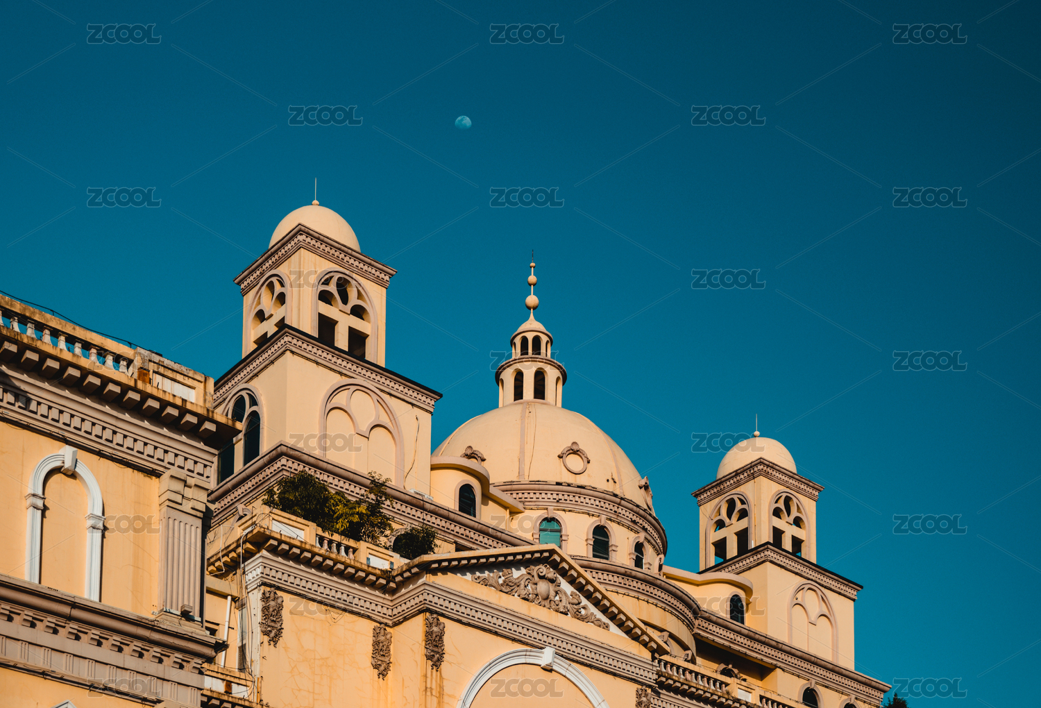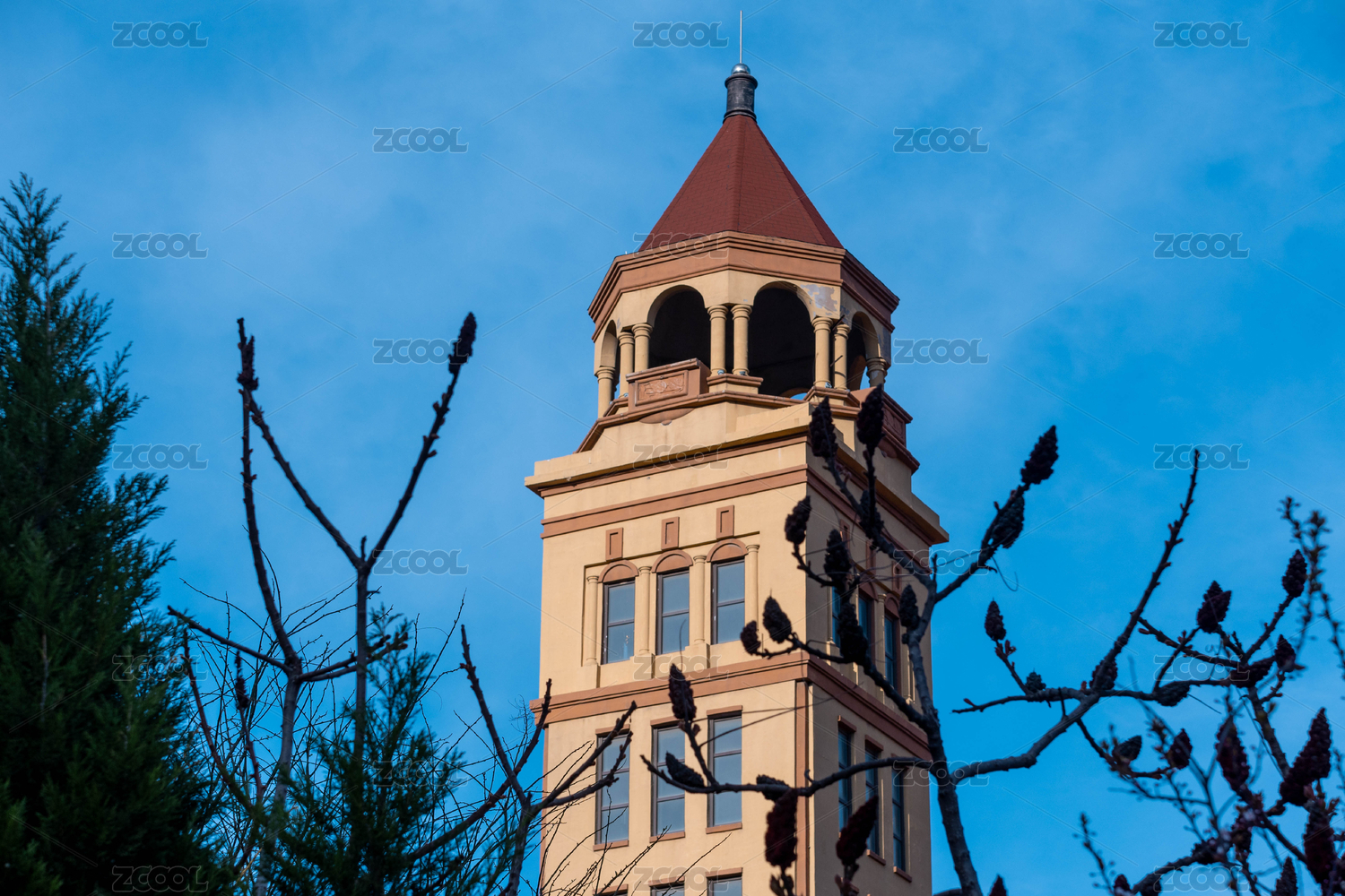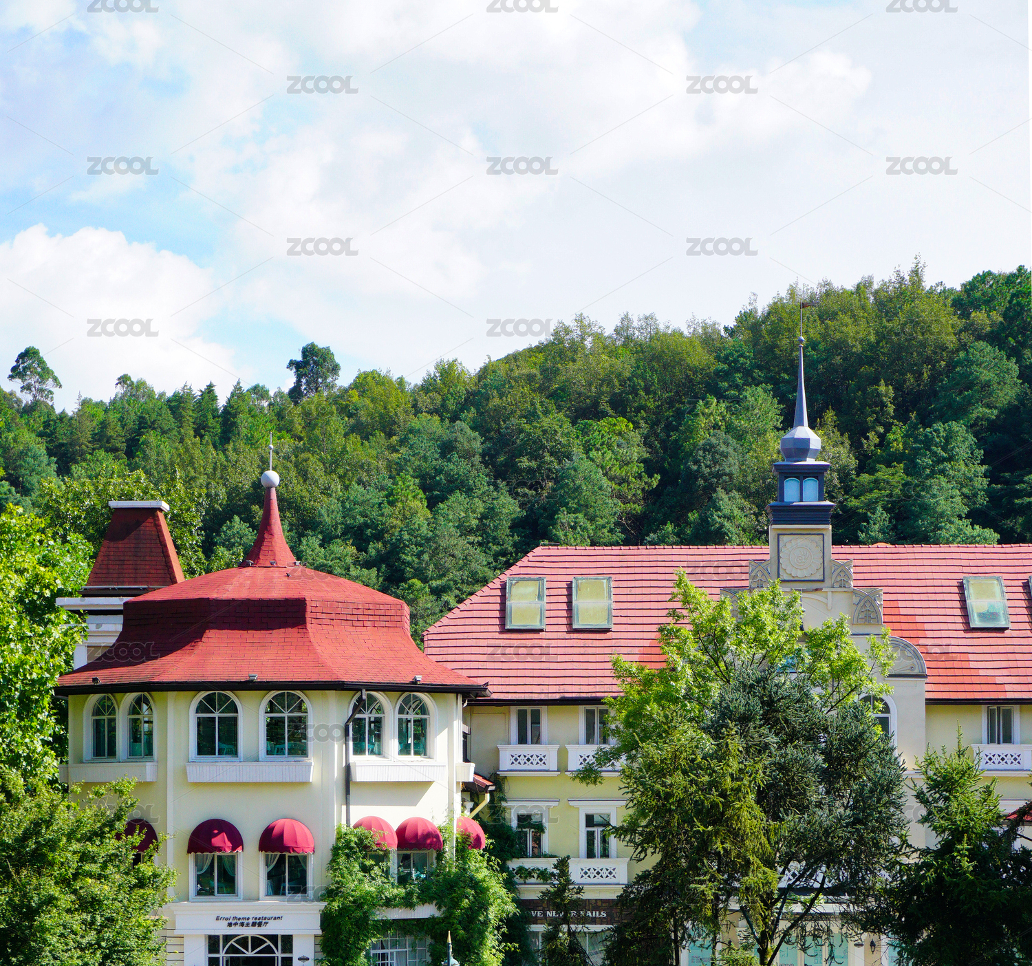 昆明世博園紅頂歐式建筑與蔥郁山林