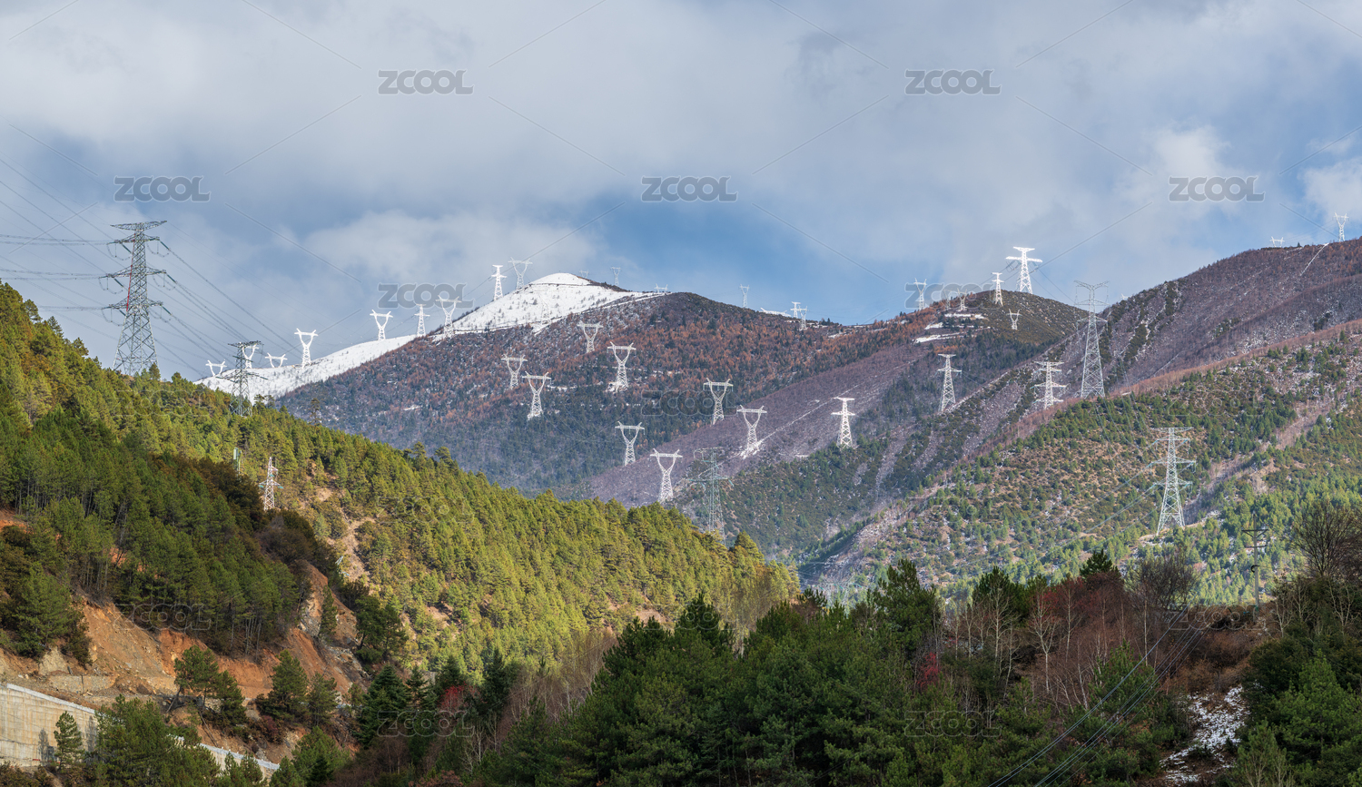 中國西藏那曲雪山下的高壓電網(wǎng)鐵塔