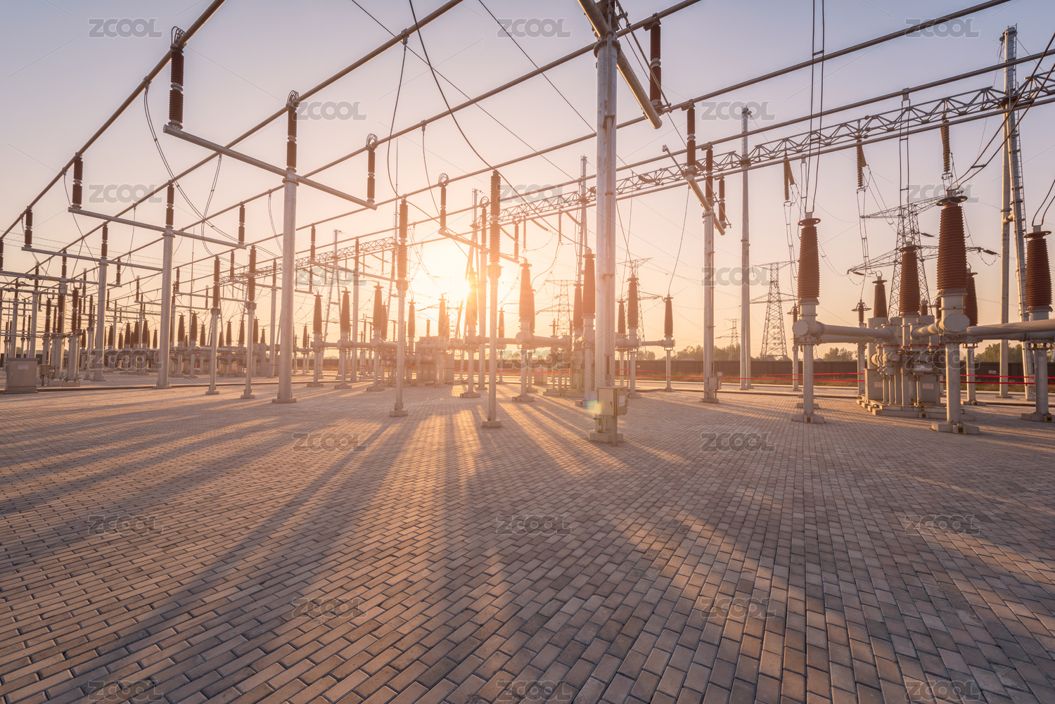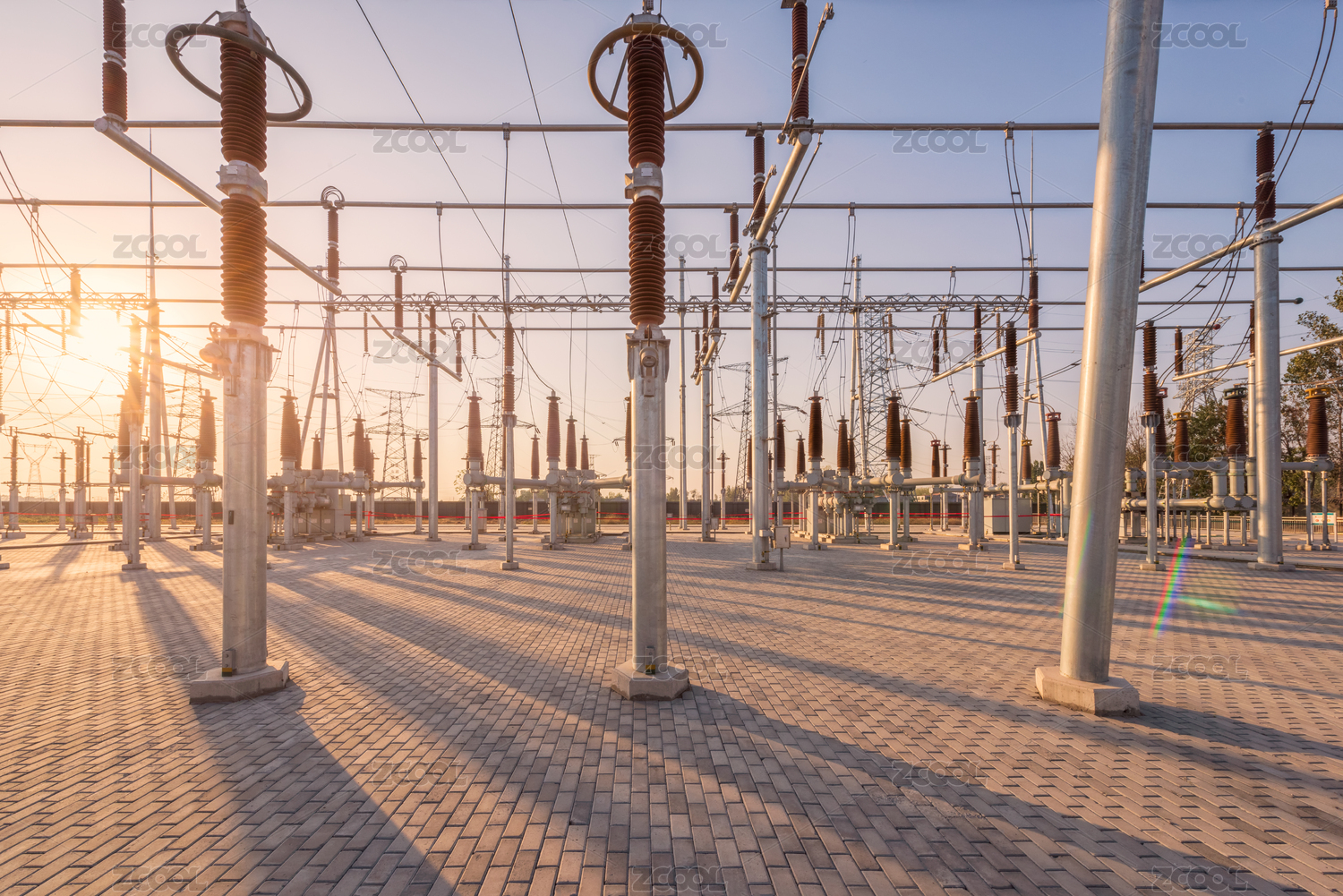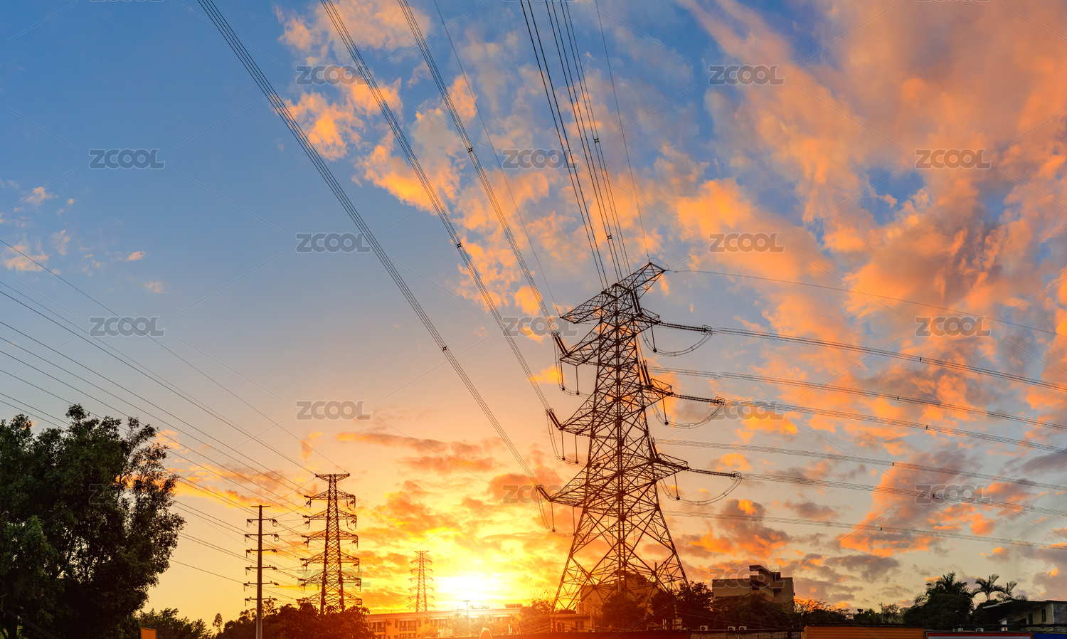夕陽下的高壓輸電網(wǎng)風(fēng)光