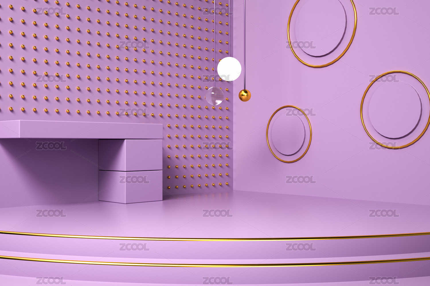 綠色空間中,懸浮著粉色的展示臺(tái)