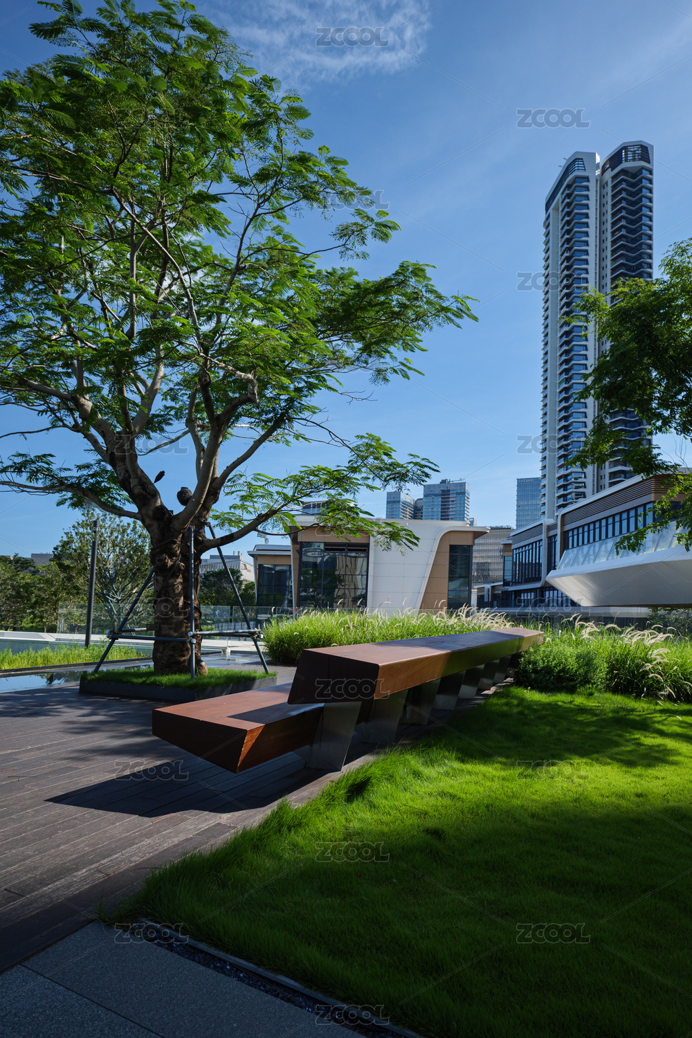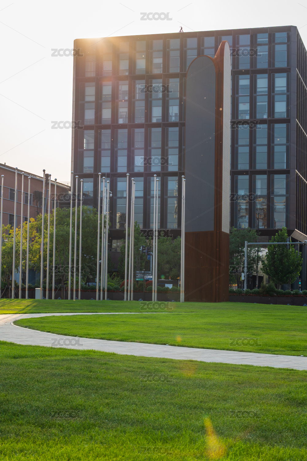 現(xiàn)代辦公樓與陽光草坪