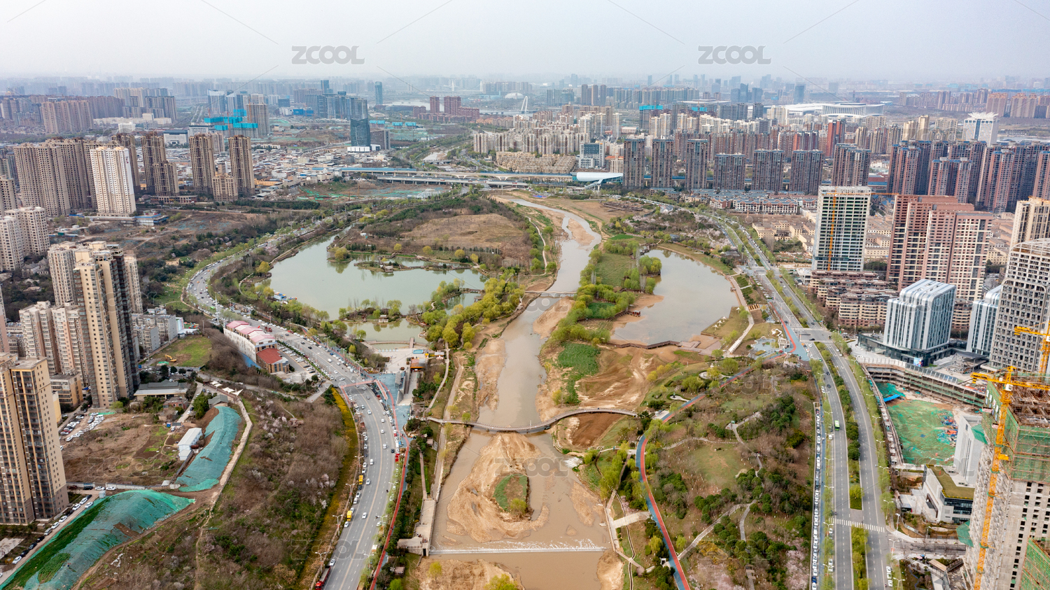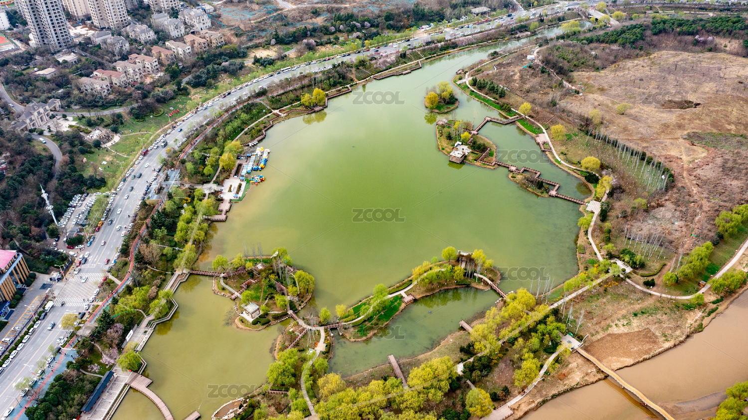 西安灞橋桃花潭航拍