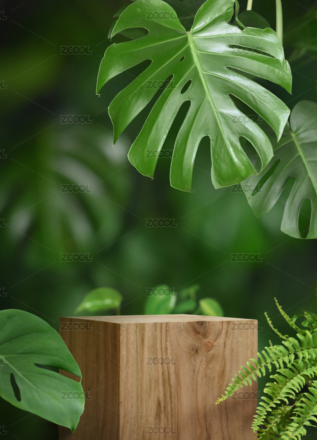 木質(zhì)立方體和植物植物背景