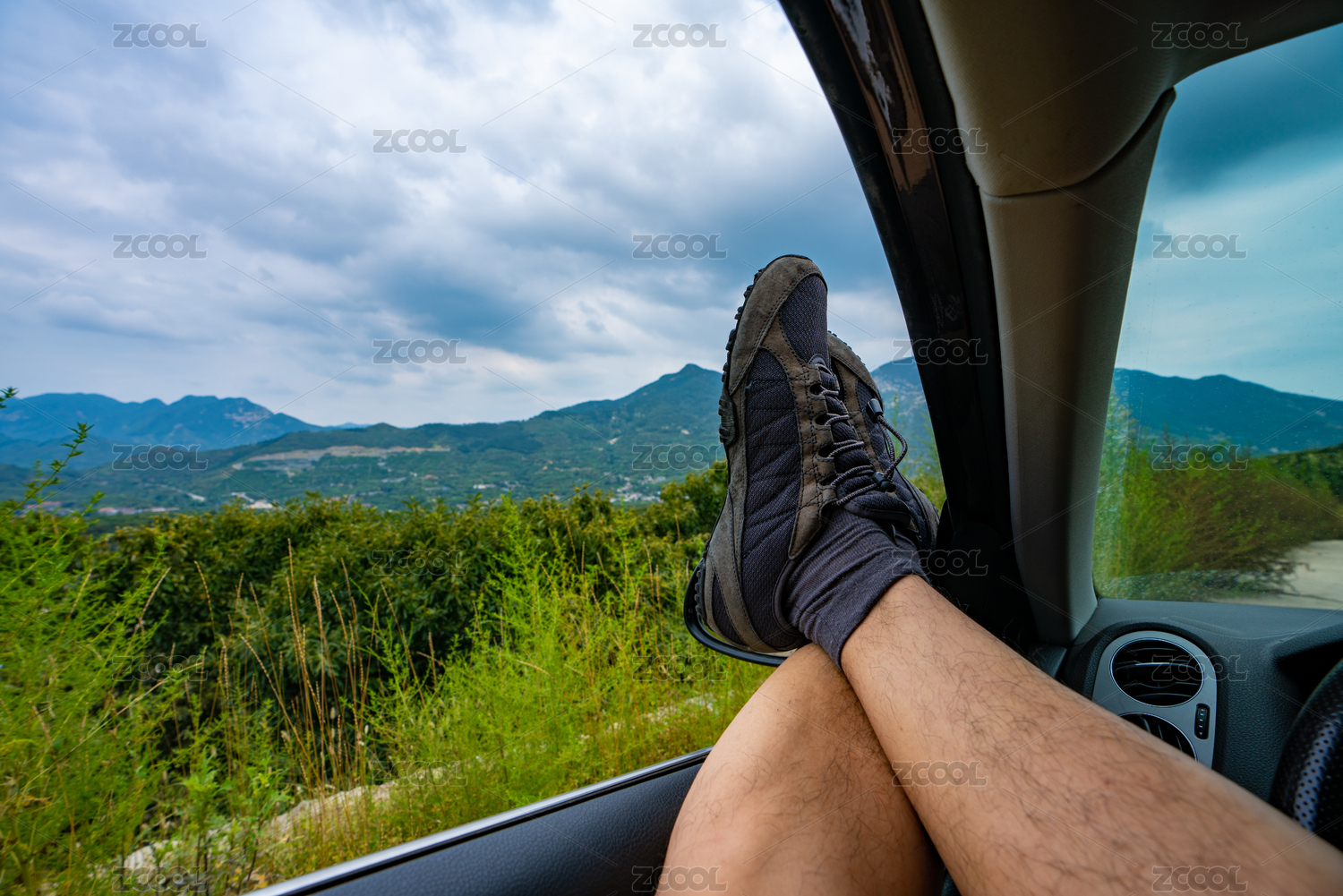 腳搭在車窗上悠閑自得欣賞窗外路途的美麗風(fēng)景