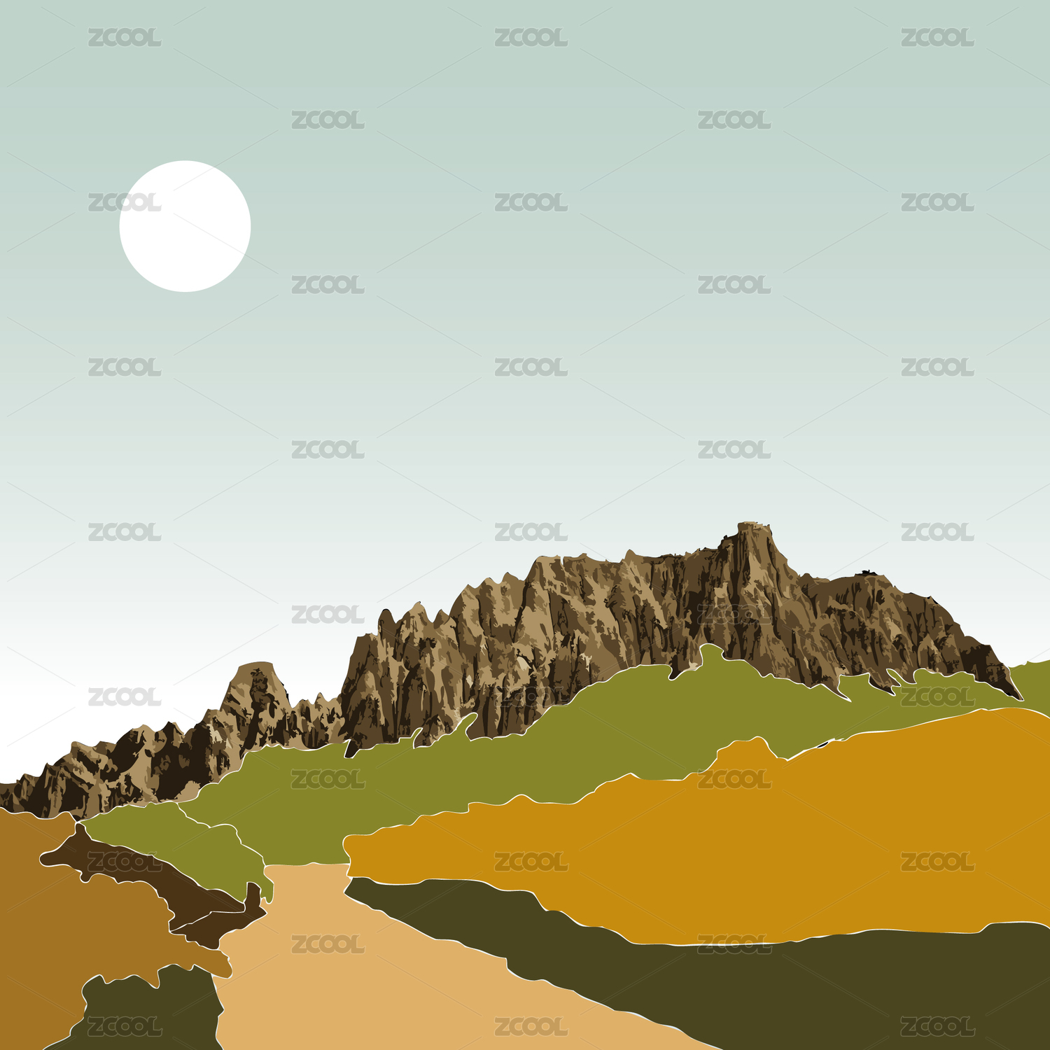 美國西部禿頂石山風(fēng)光 祁連山秋景 矢量插畫風(fēng)景